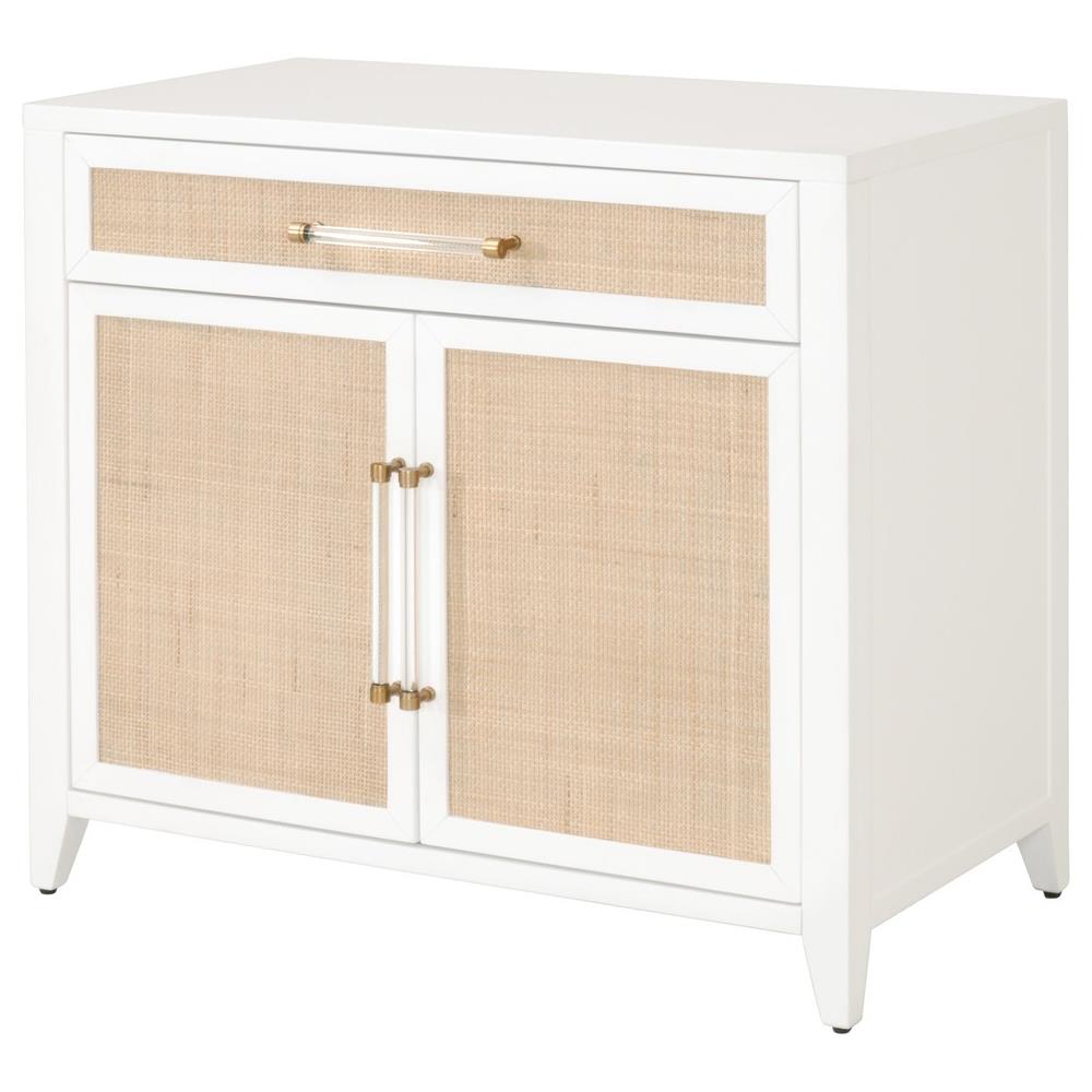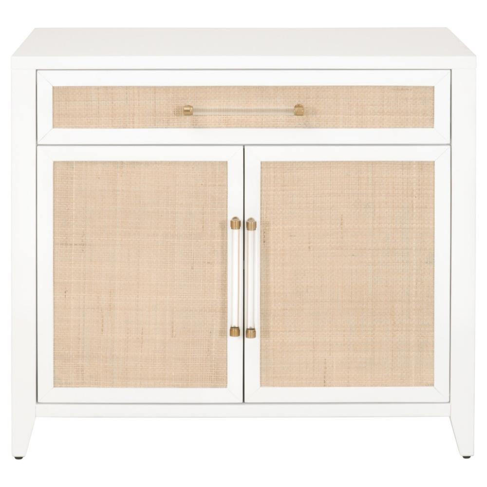 Steven Coastal Beach Matte White Natural Rattan Media Cabinet