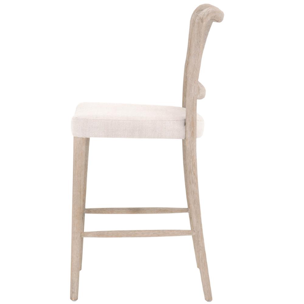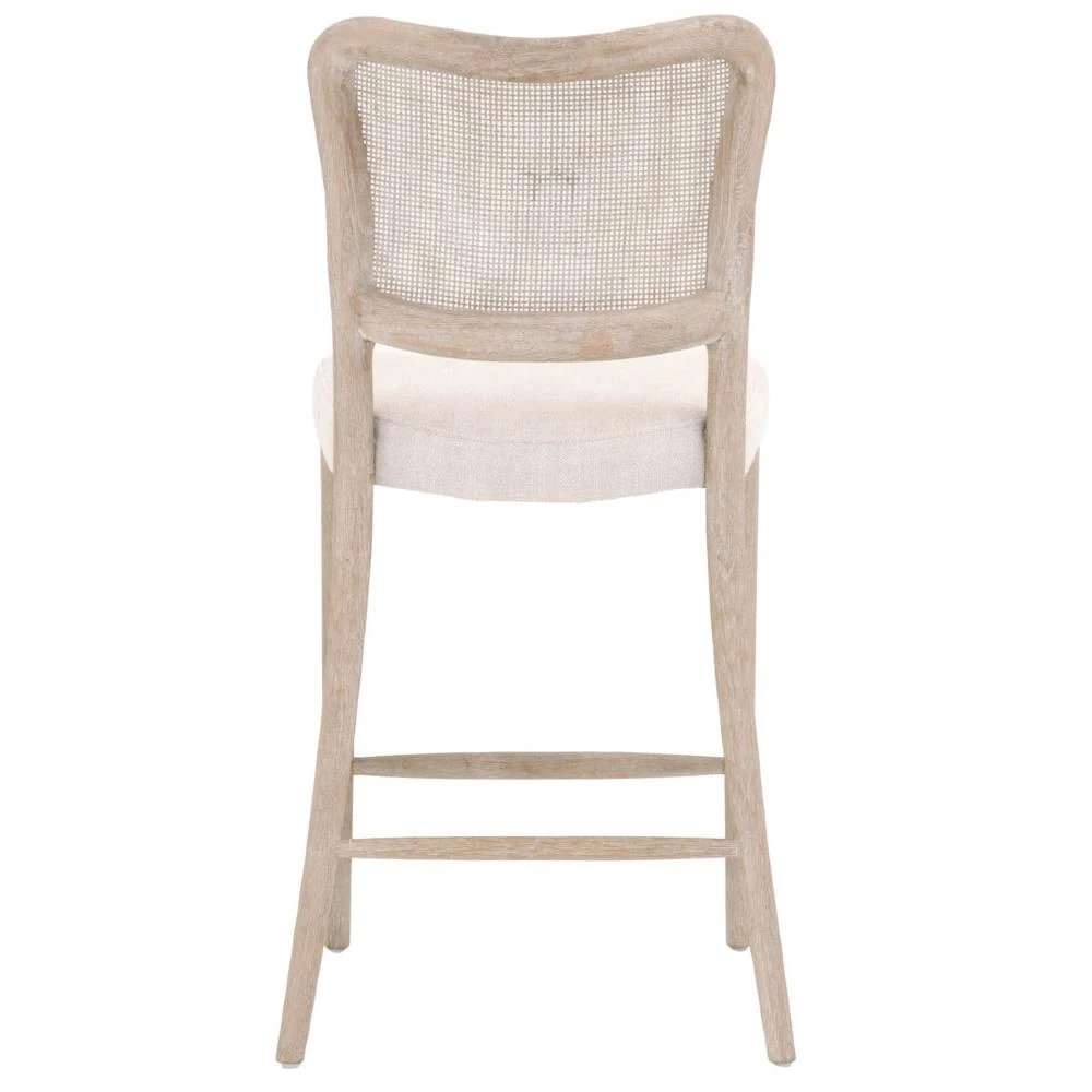 Edward Coastal White Linen Driftwood Mahogany Woven Cane Counter Stool