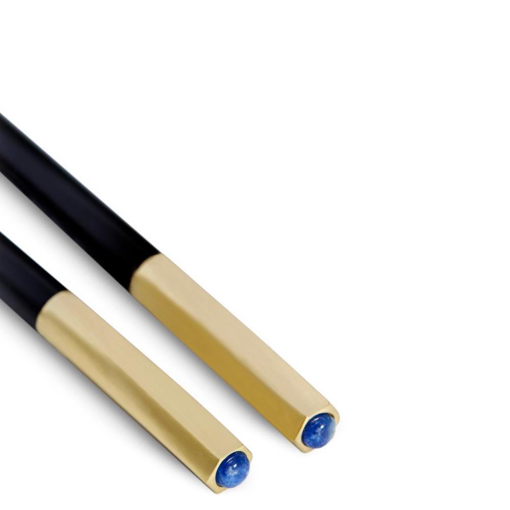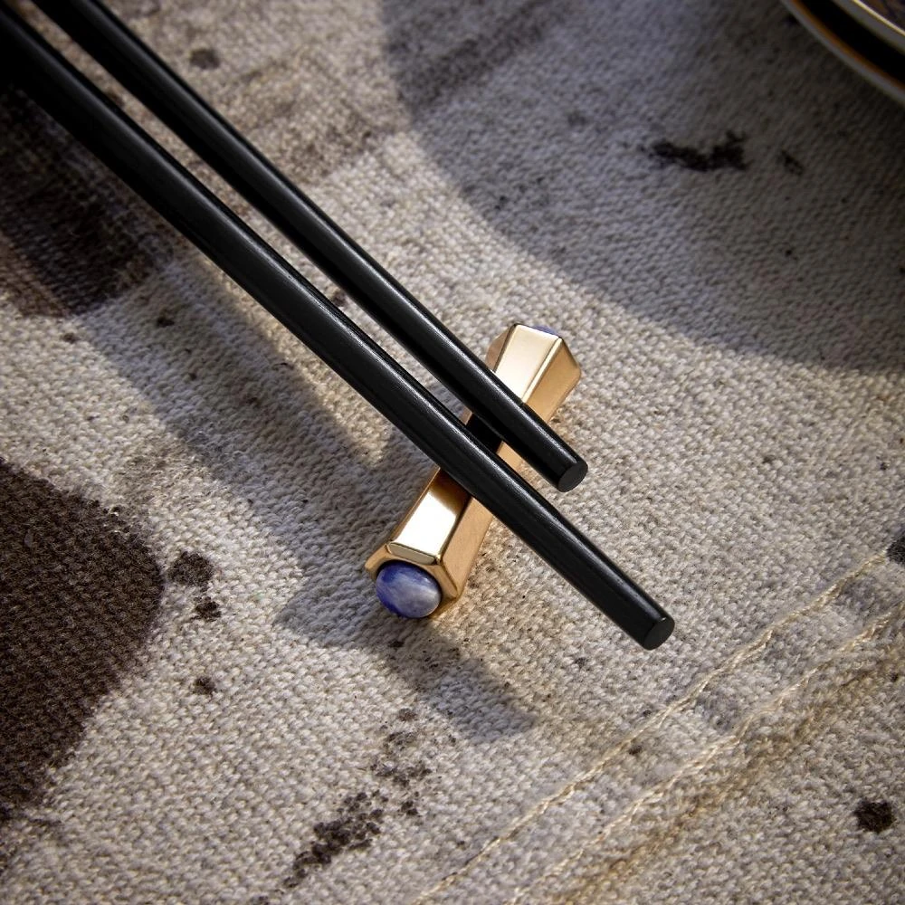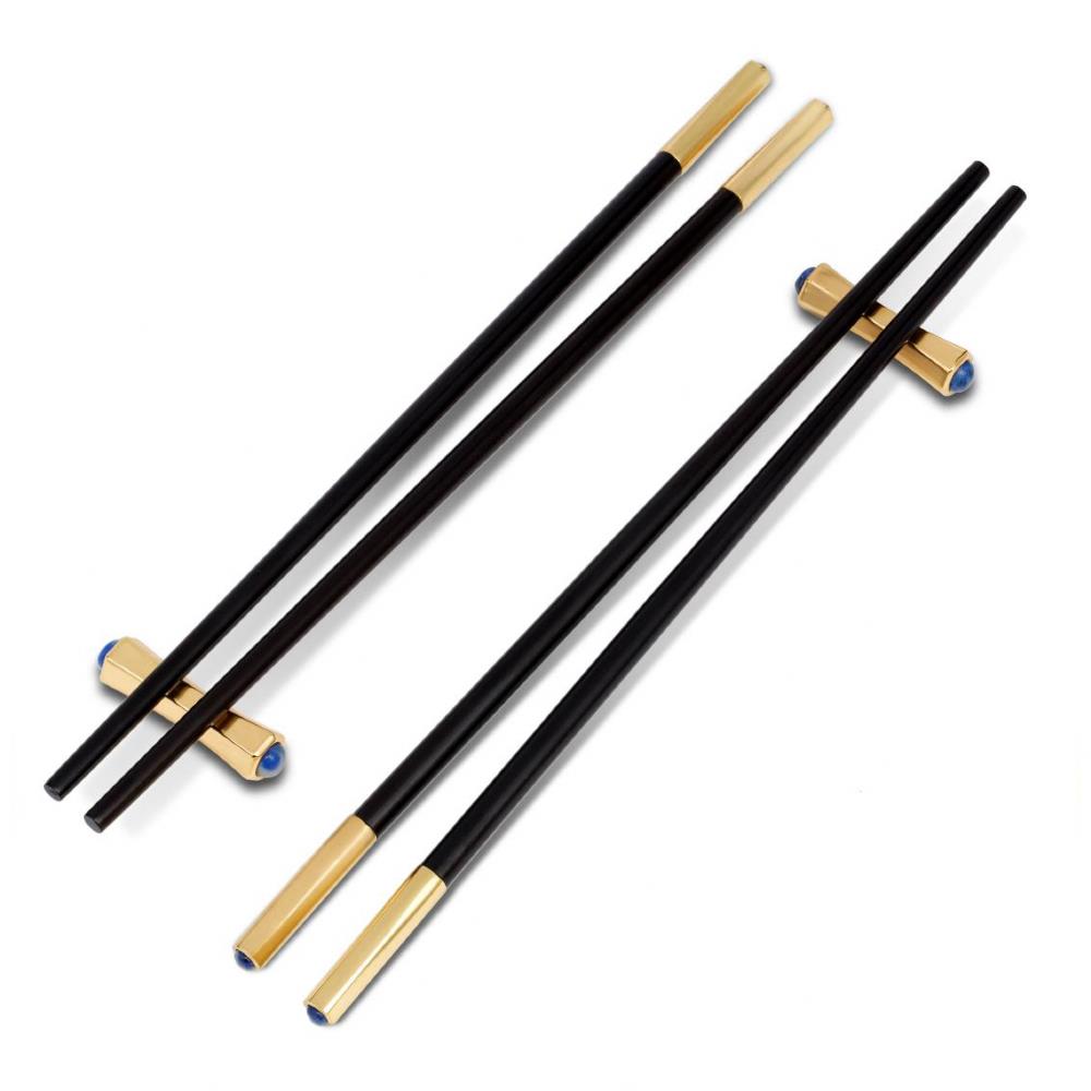 L'Objet Zen Modern Black Wood Gold Edge Chopsticks and Rests - Set of 2 Pairs