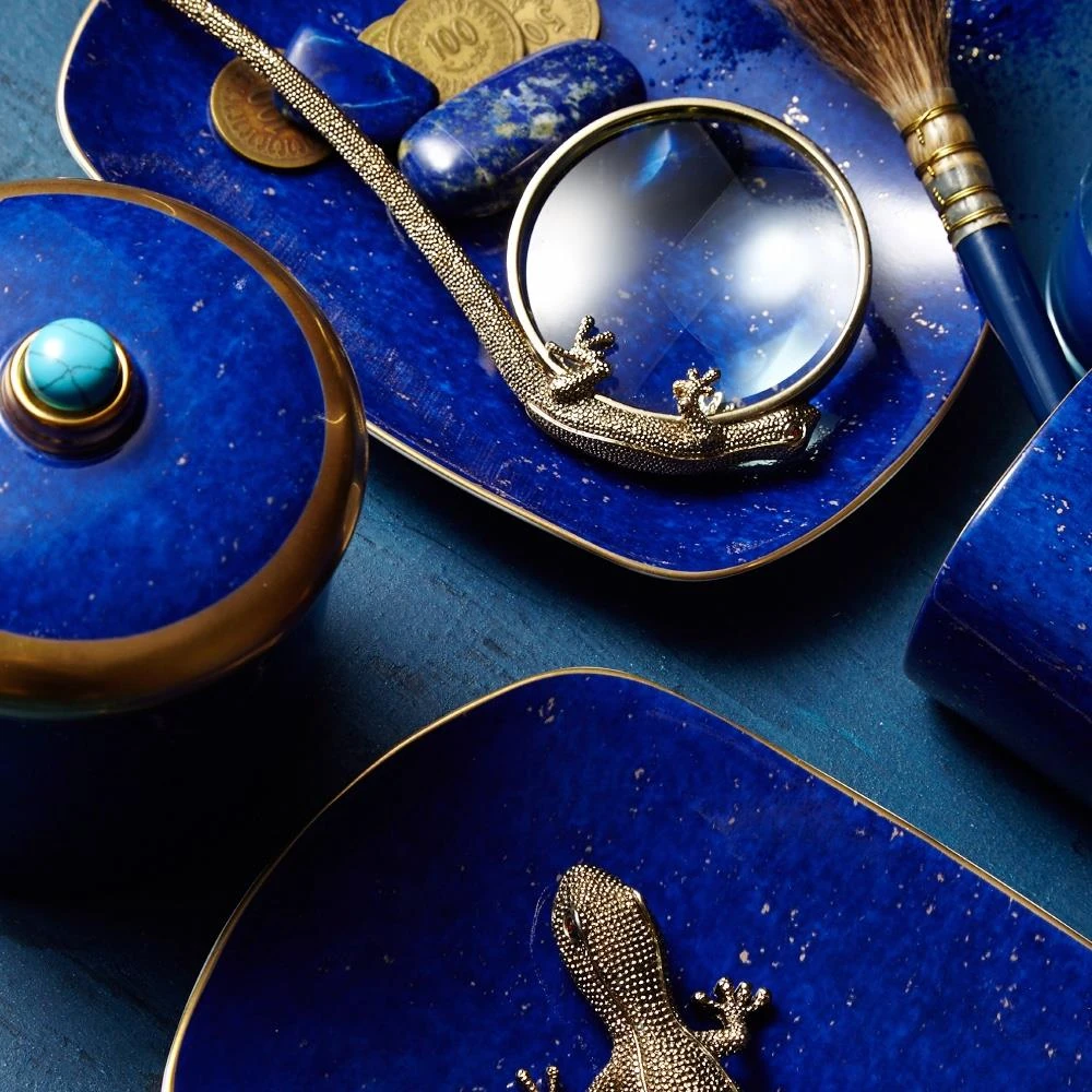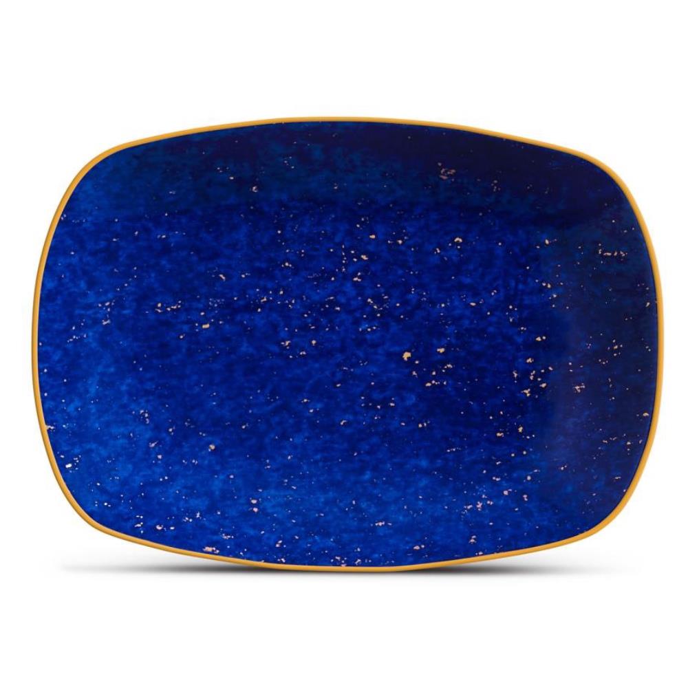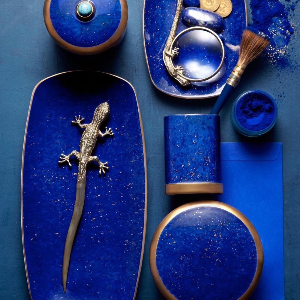 L'Objet Lapis Modern Classic Blue Porcelain Gold Accent Rectangular Tray - Small