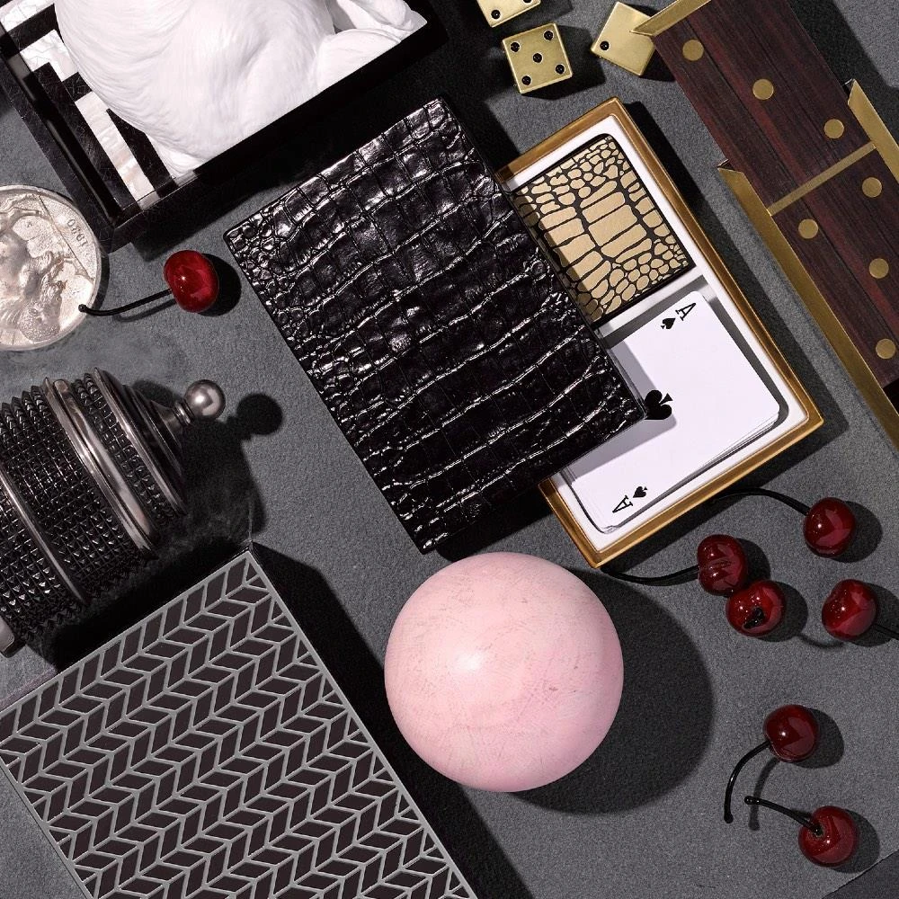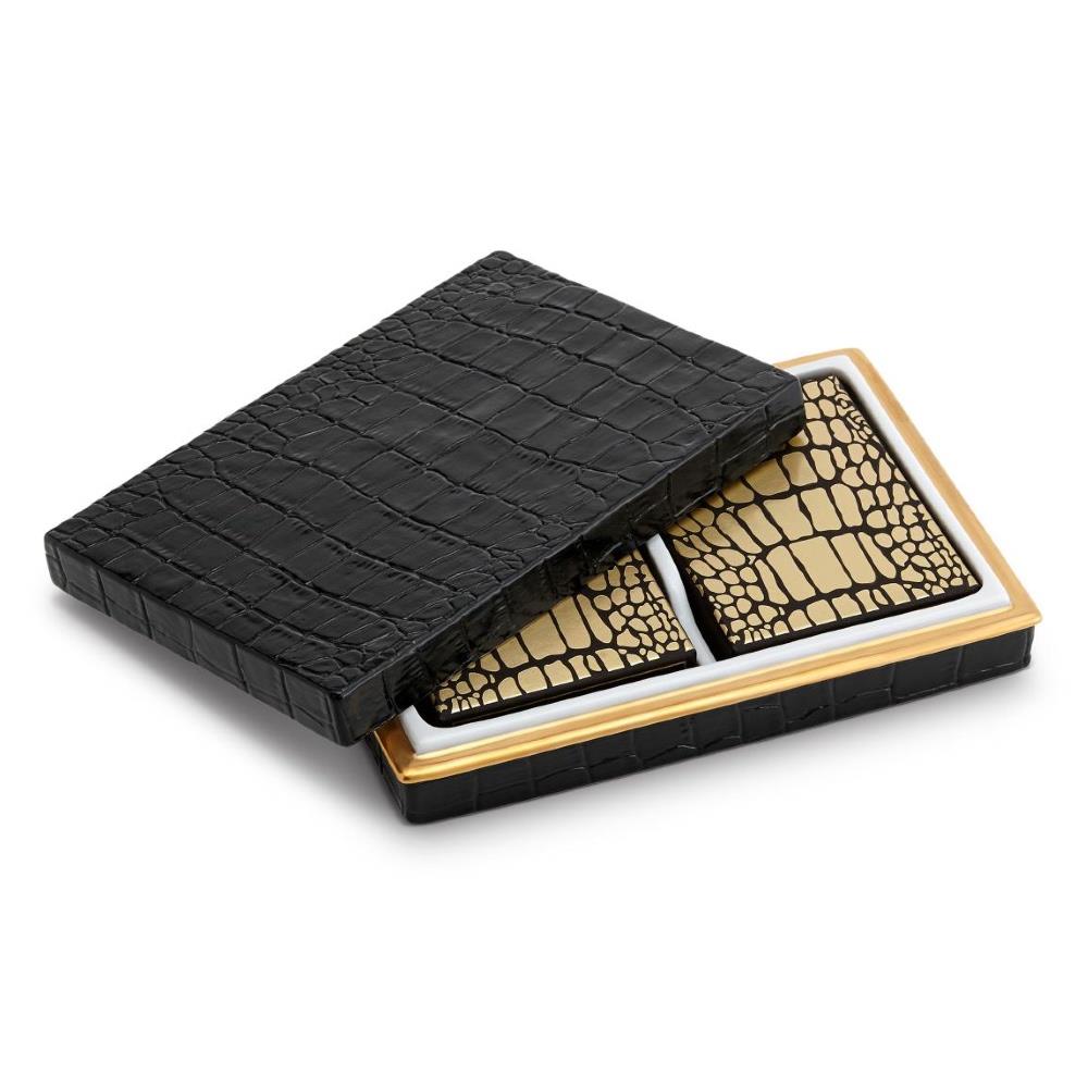 L'Objet Crocodile Midcentury Black Porcelain 2 Decks Playing Cards