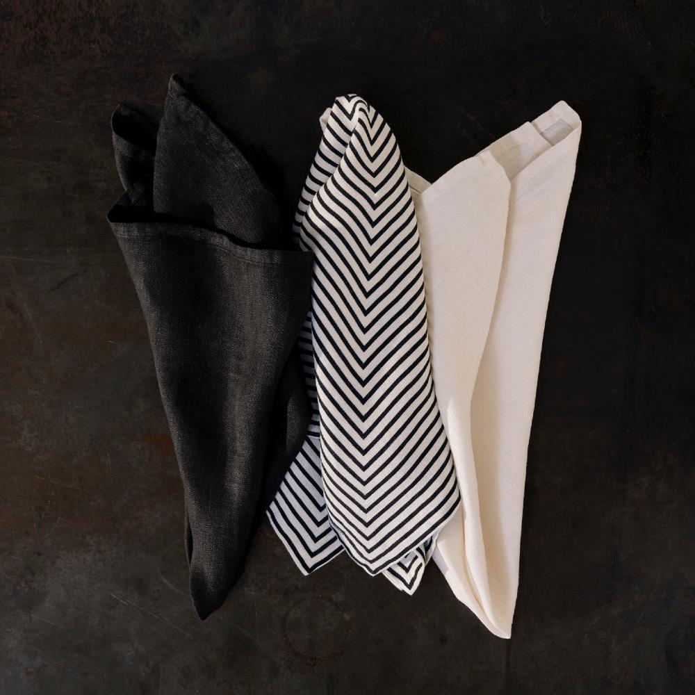 L'Objet Sateen Modern Classic Ivory Linen Napkins - Set of 4