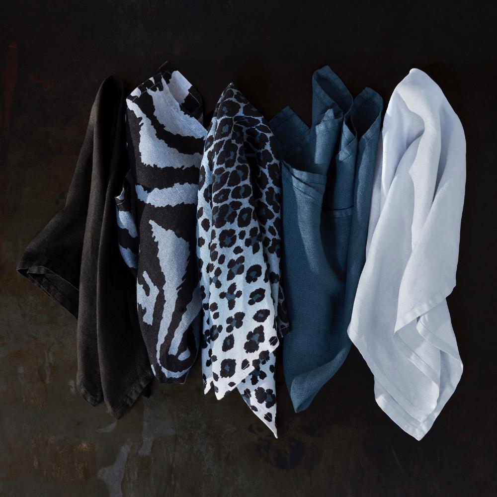 L'Objet Sateen Modern Classic Blue Linen Napkins - Set of 4