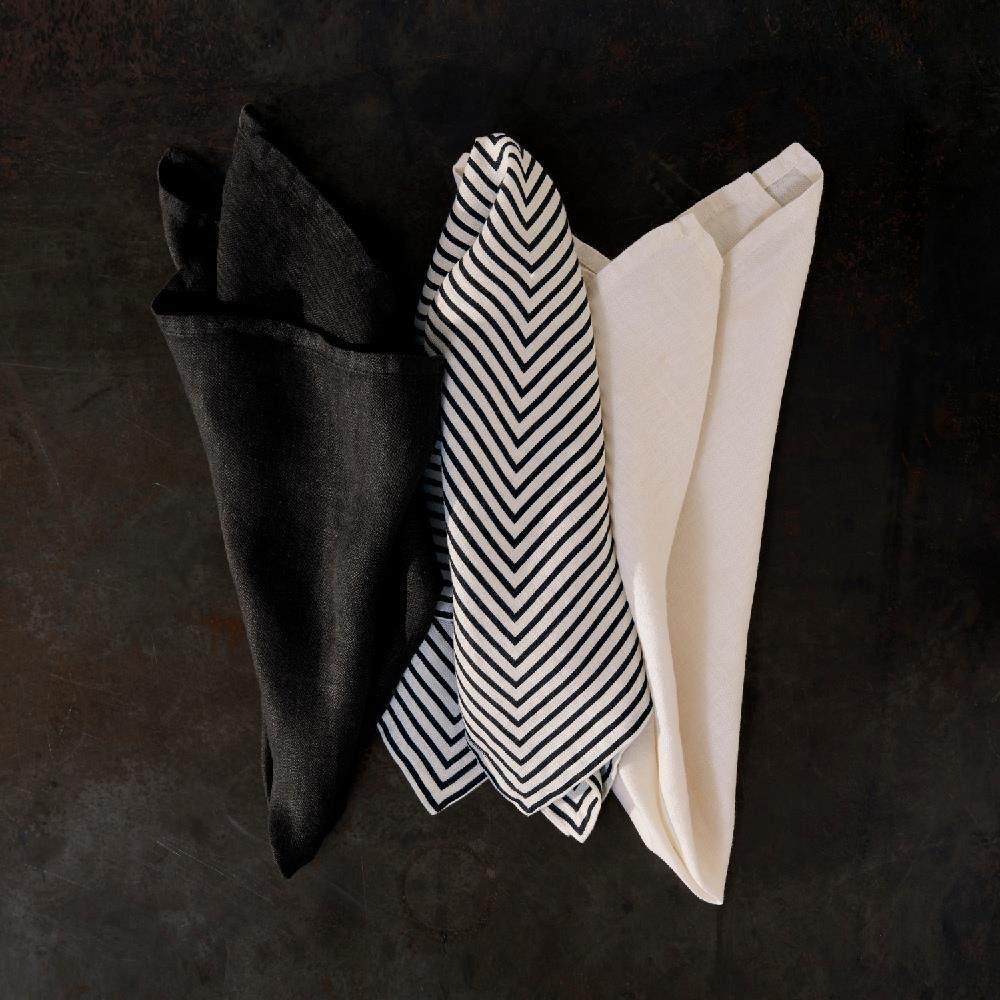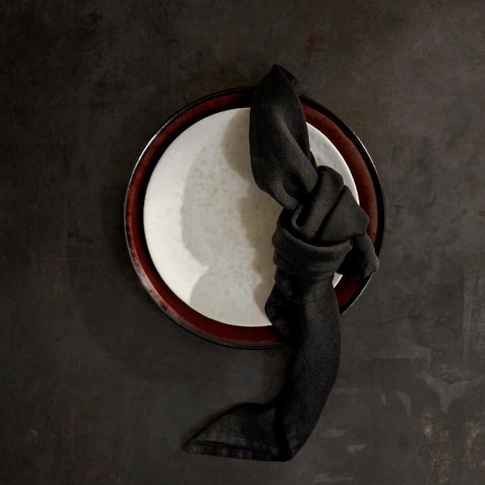 L'Objet Sateen Modern Classic Black Linen Napkins - Set of 4