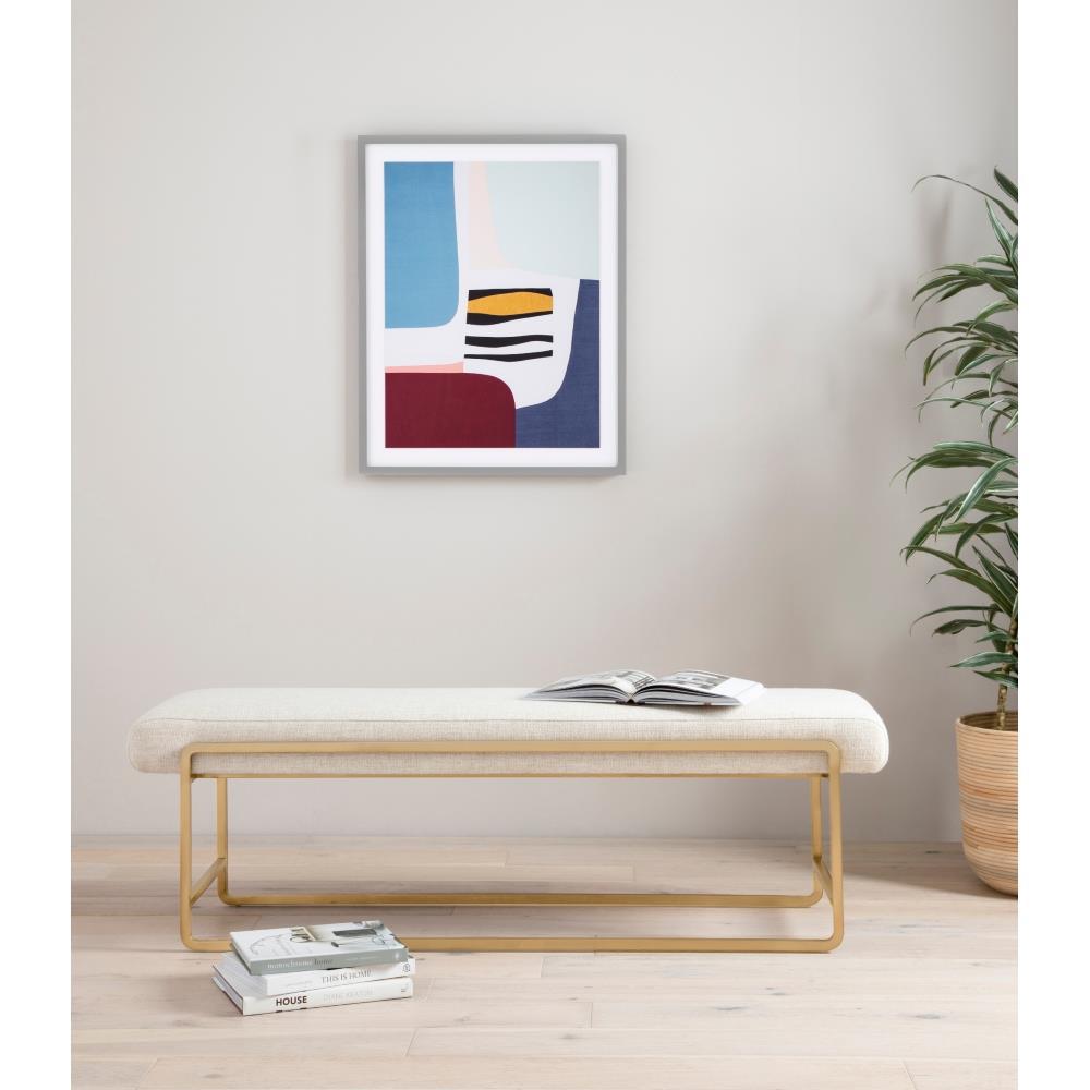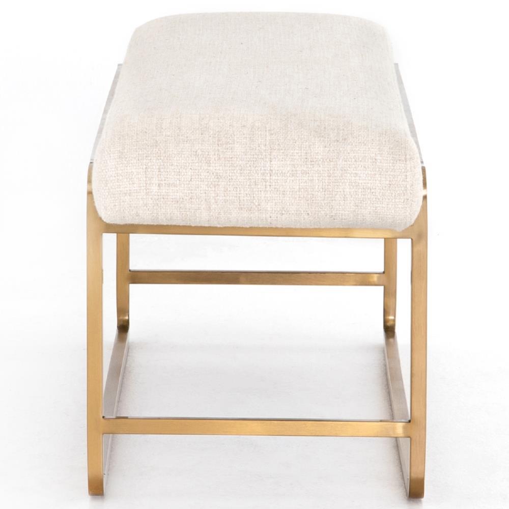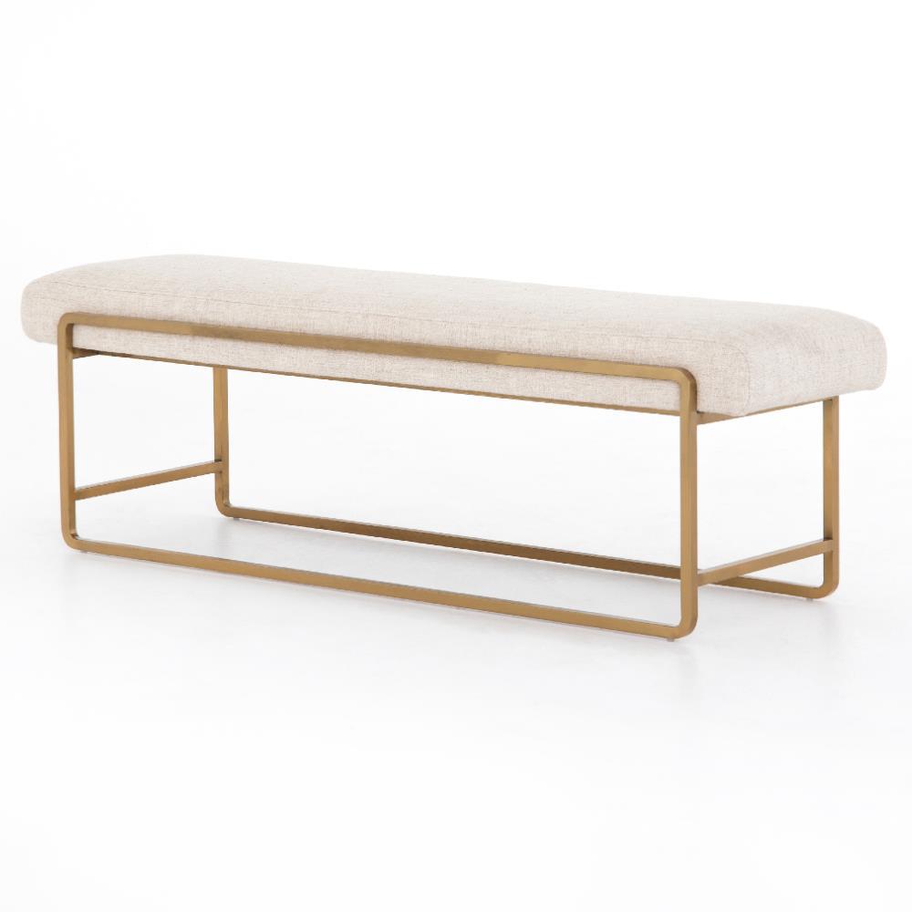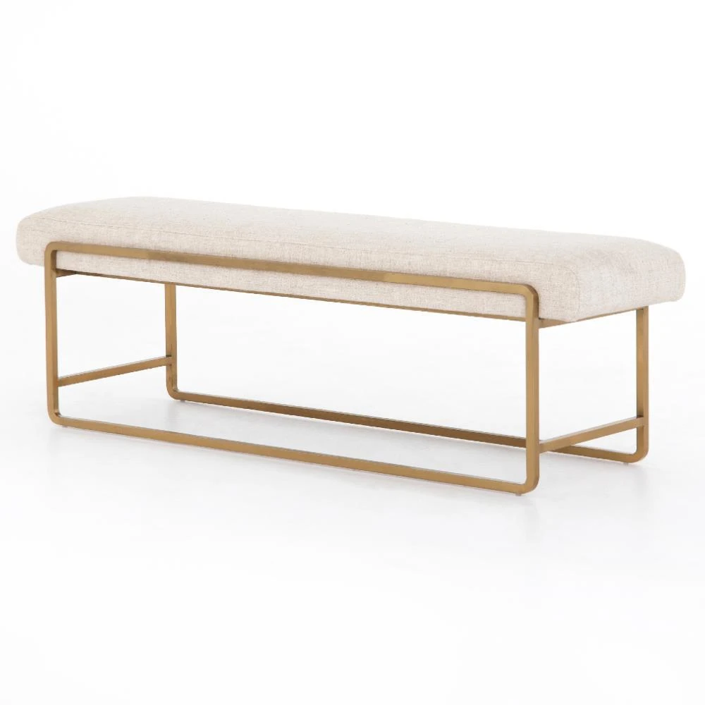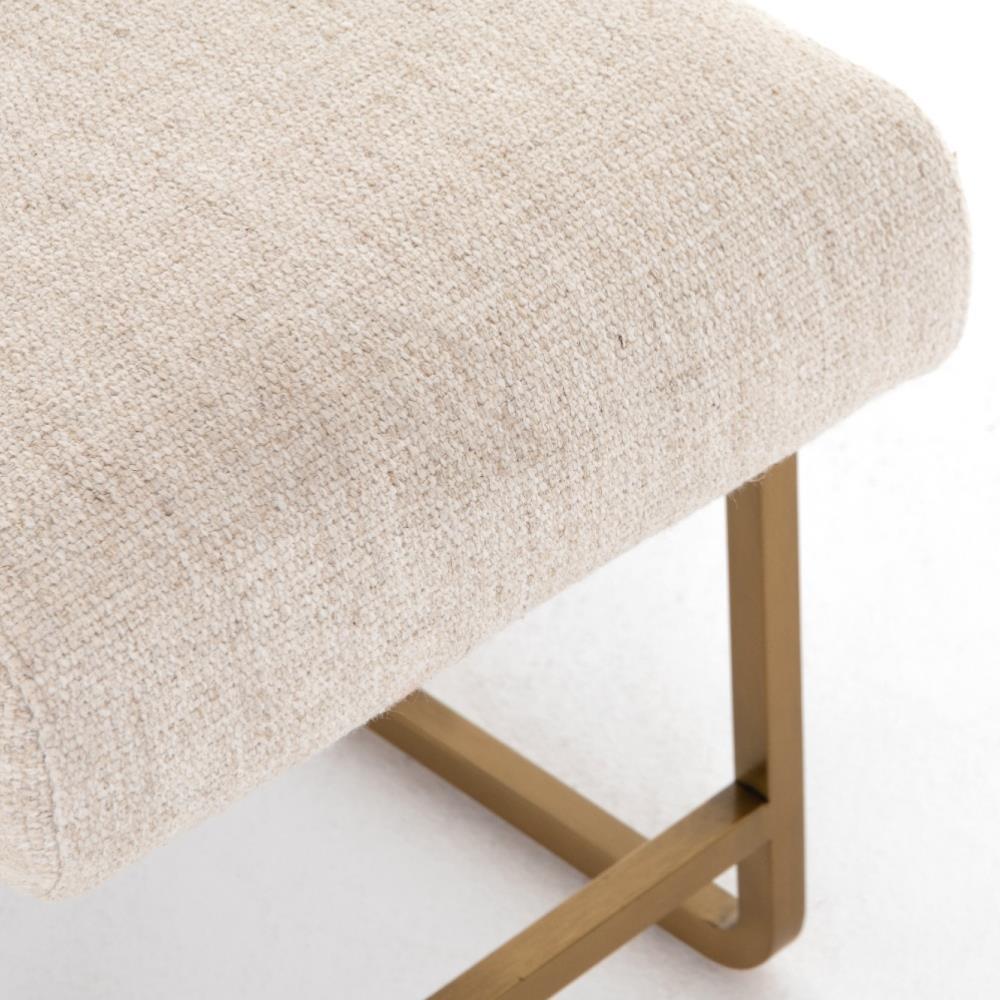 • Hani Modern Classic Gold Iron Frame White Performance Linen Seat Bench|Kathy Kuo Home