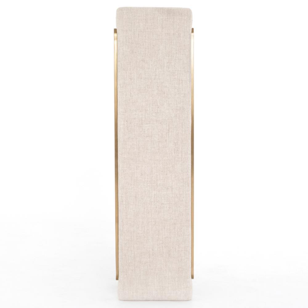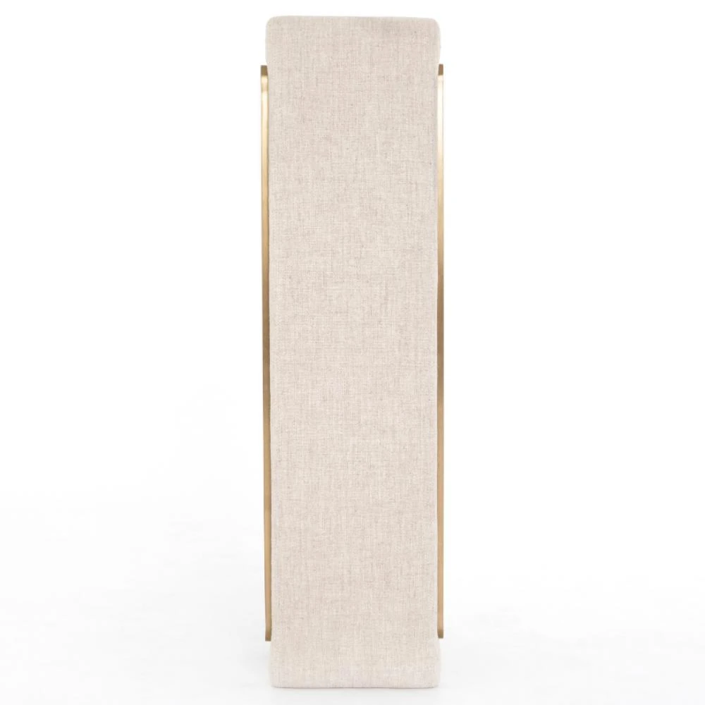 • Upholstered in beige high performance, quality fabric; Fabric content: 85% acrylic and 15% linen