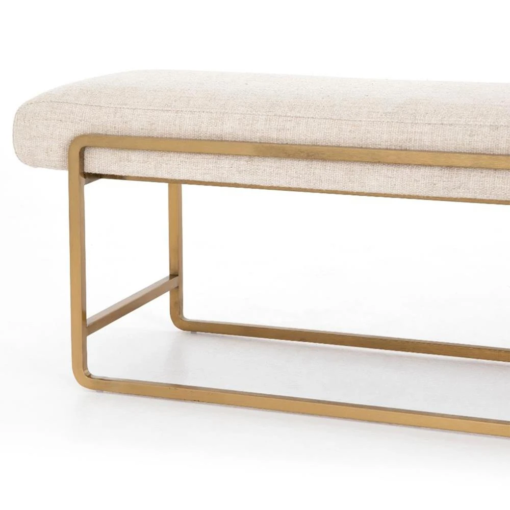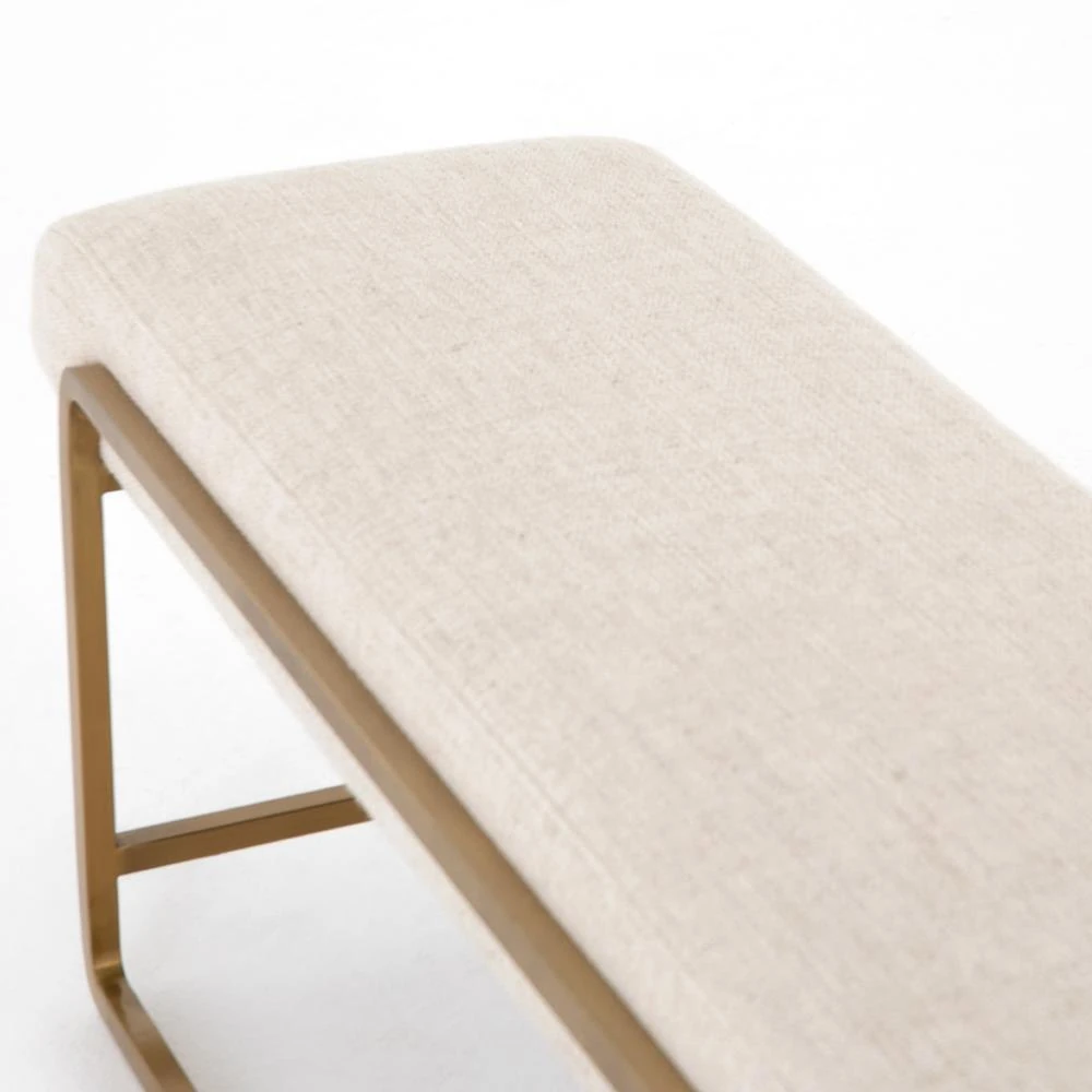 Hani Modern Classic Gold Iron Frame White Performance Linen Seat Bench