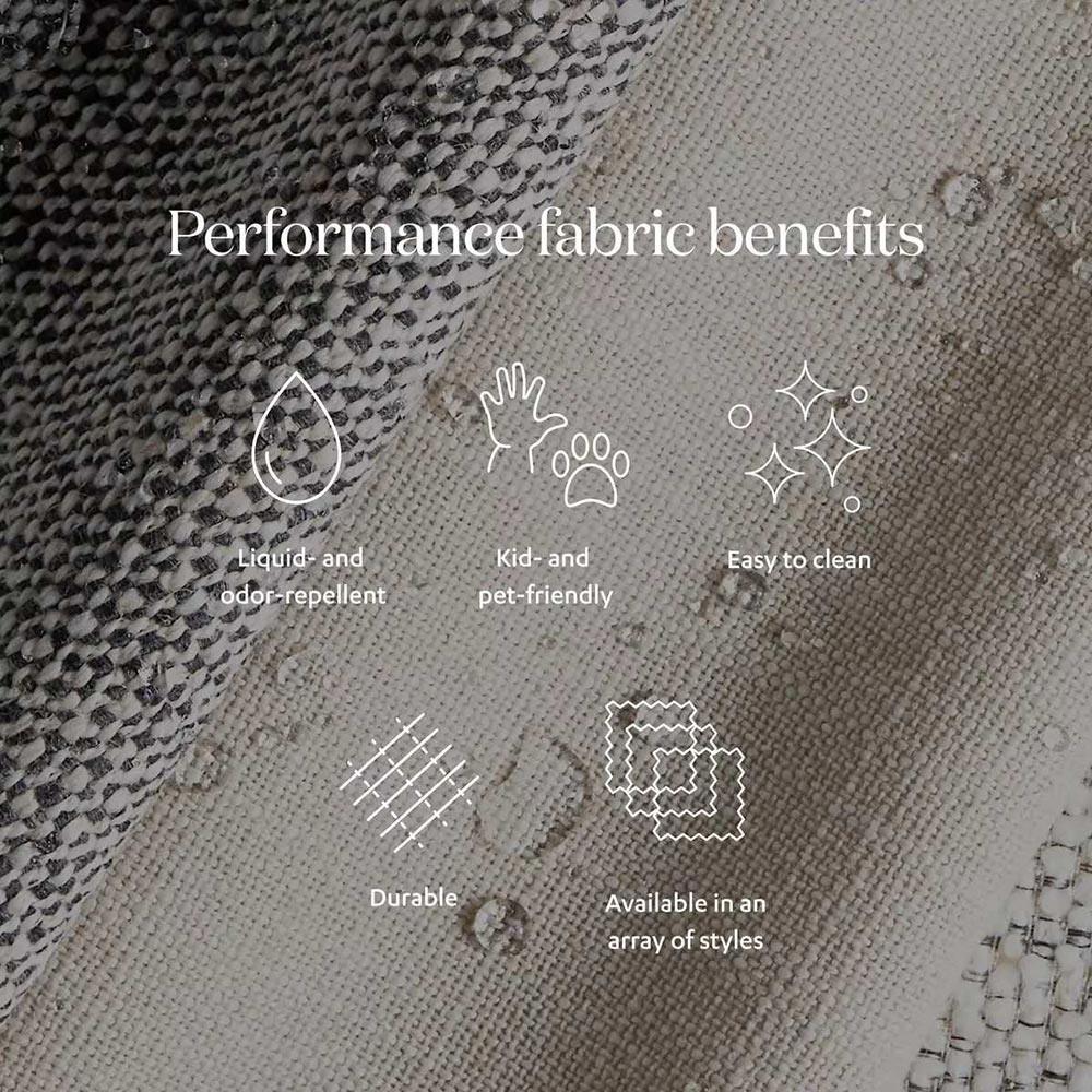 • Performance fabrics are specially created to withstand spills, stains, high traffic and wear