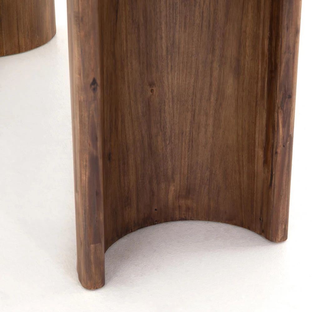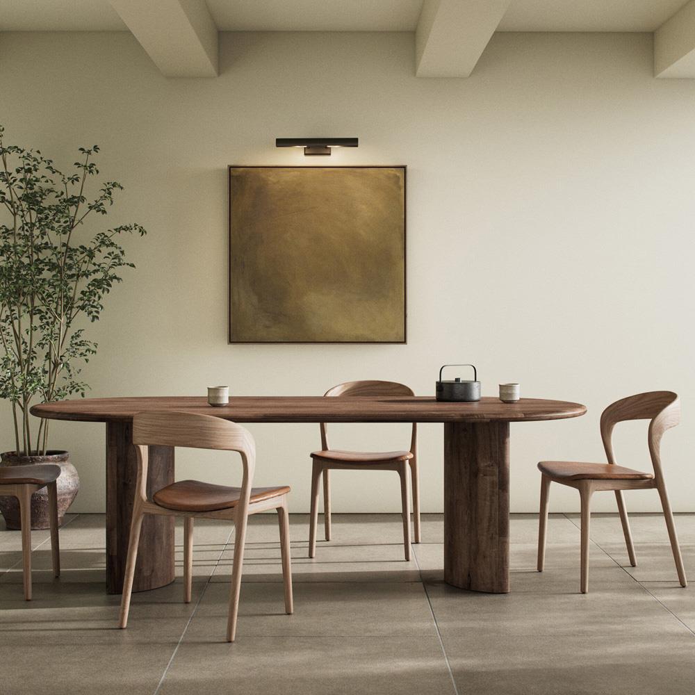 Curved lines and natural materials create an elegant silhouette on the Paris dining table. Acacia wood is finished in brown, forming an ... more