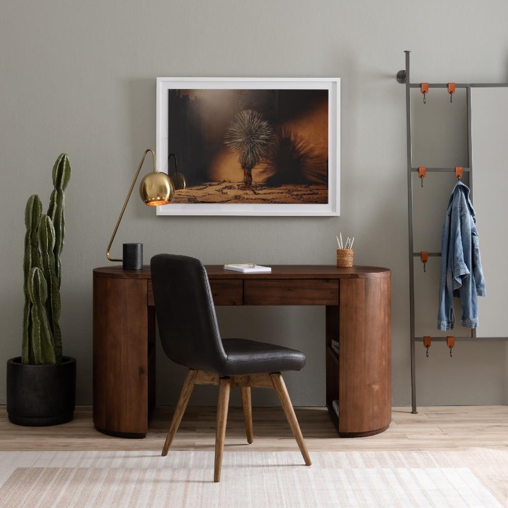 • Nery Mid Century Modern Brown Walnut Wood Rectangular Office Desk|Kathy Kuo Home