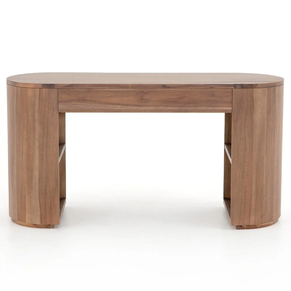 Nery Mid Century Modern Brown Walnut Wood Rectangular Office Desk