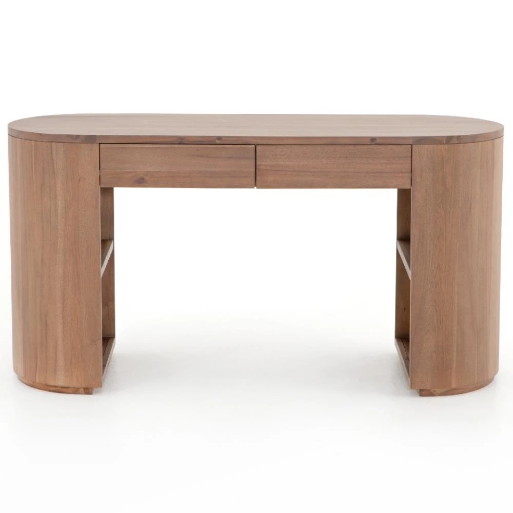 Worlds Away Petra Natural Burl Woodgrain Clear Acrylic Waterfall Edge Desk