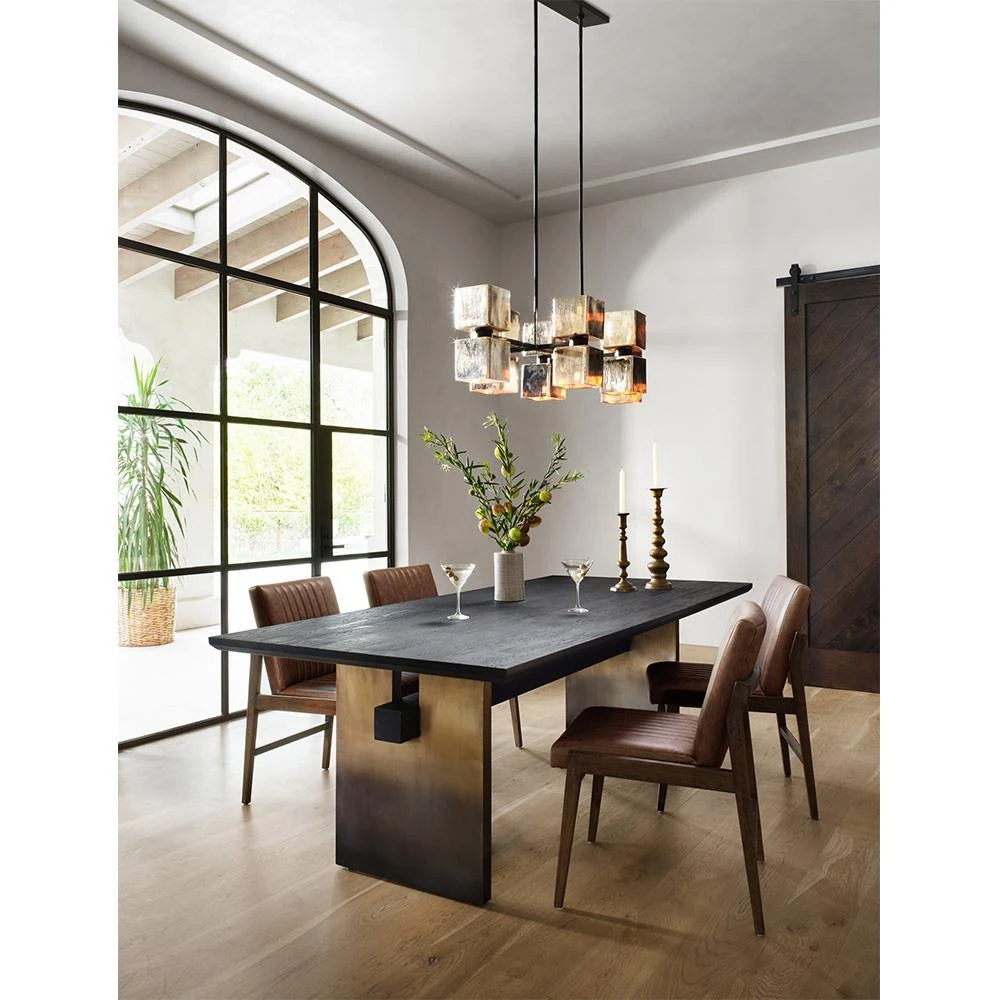 • Ely Rustic Grey Performance Leather Back Brown Wood Dining Side Chair|Kathy Kuo Home