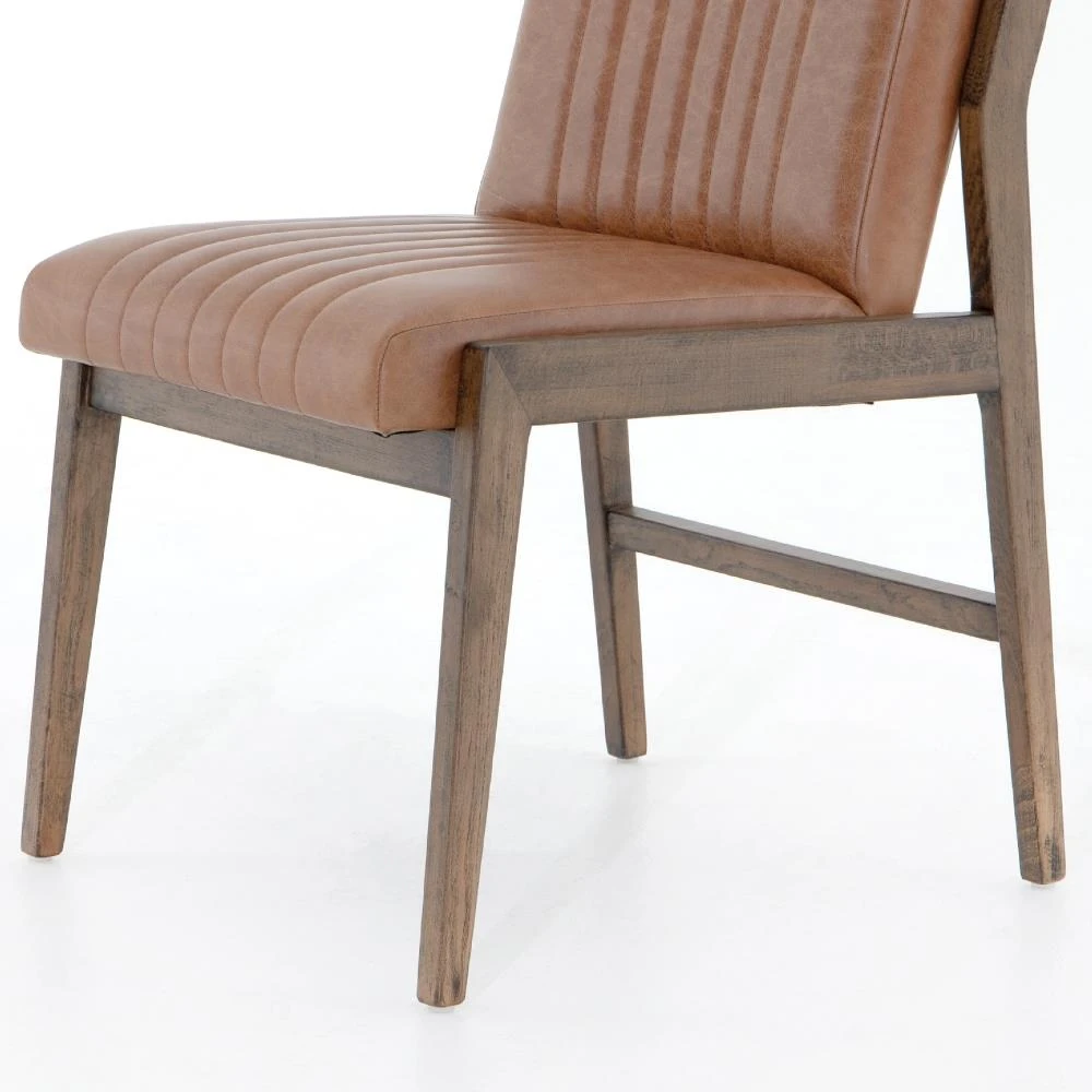 Ali Mid Century Modern Brown Leather Wood Dining Chair