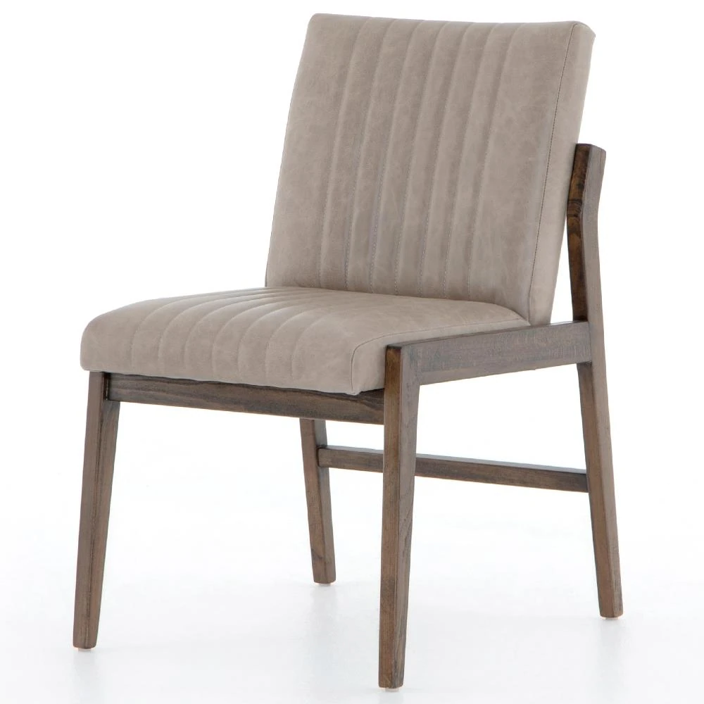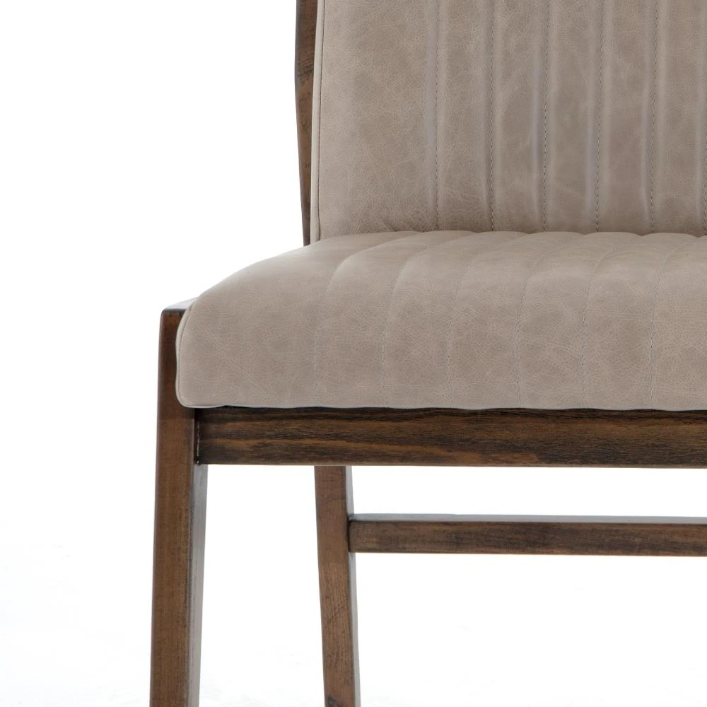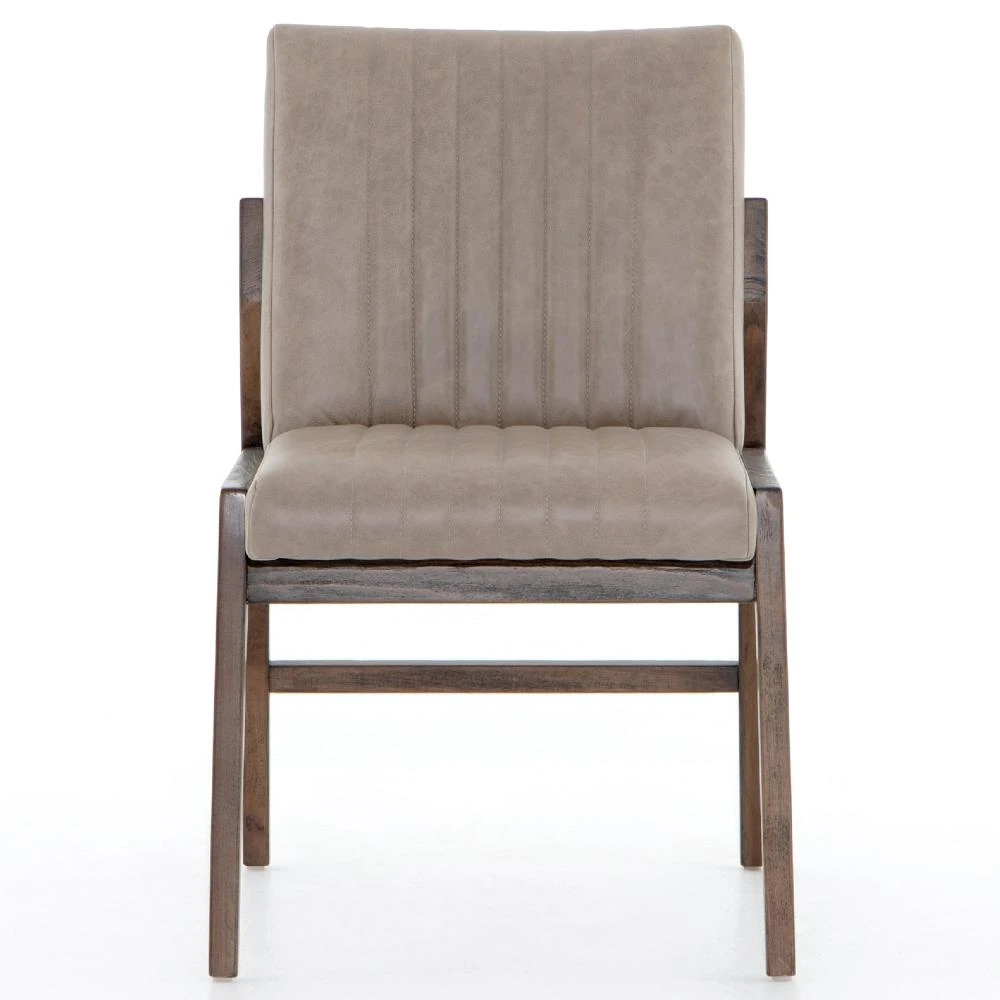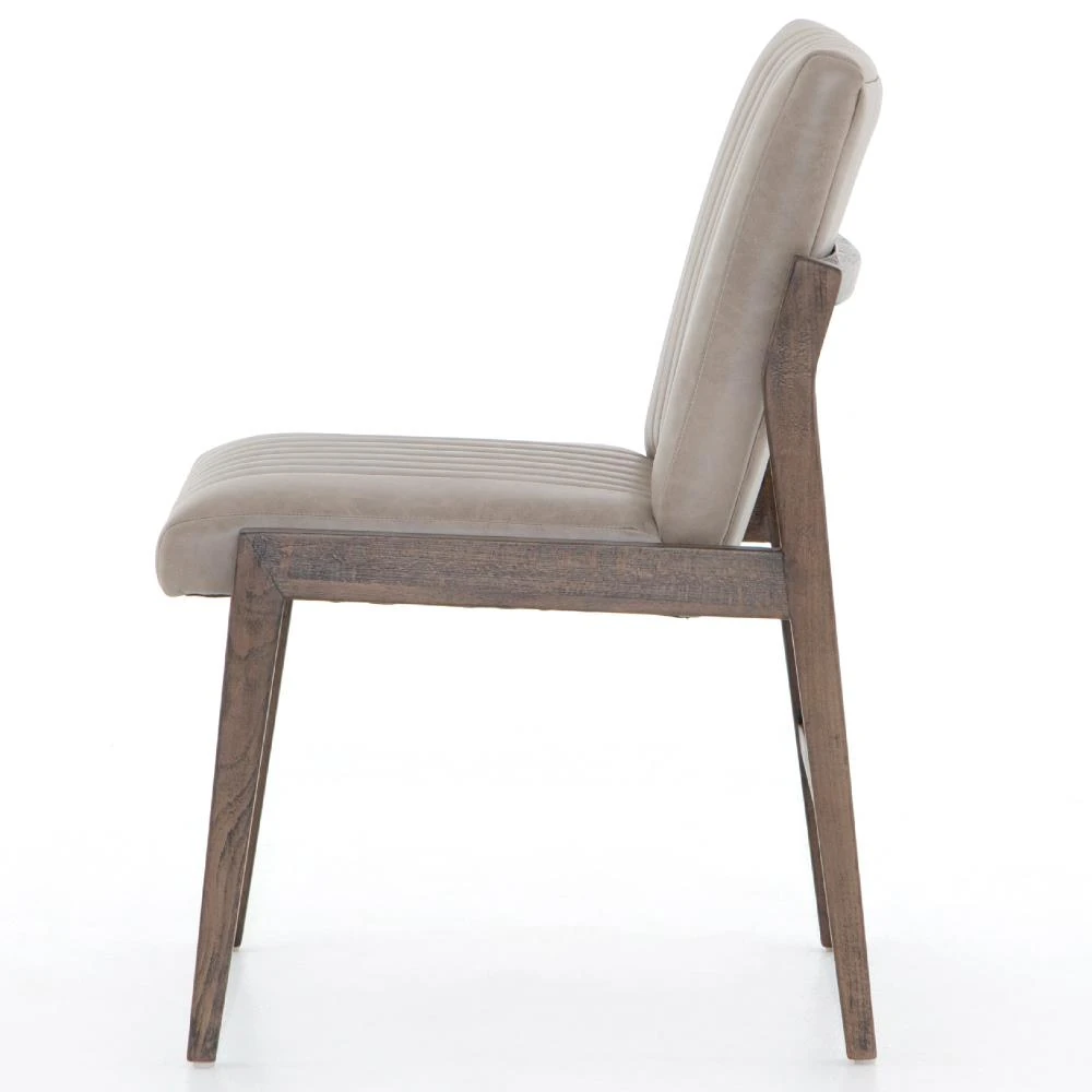 Ali Mid Century Modern Grey Leather Wood Dining Chair