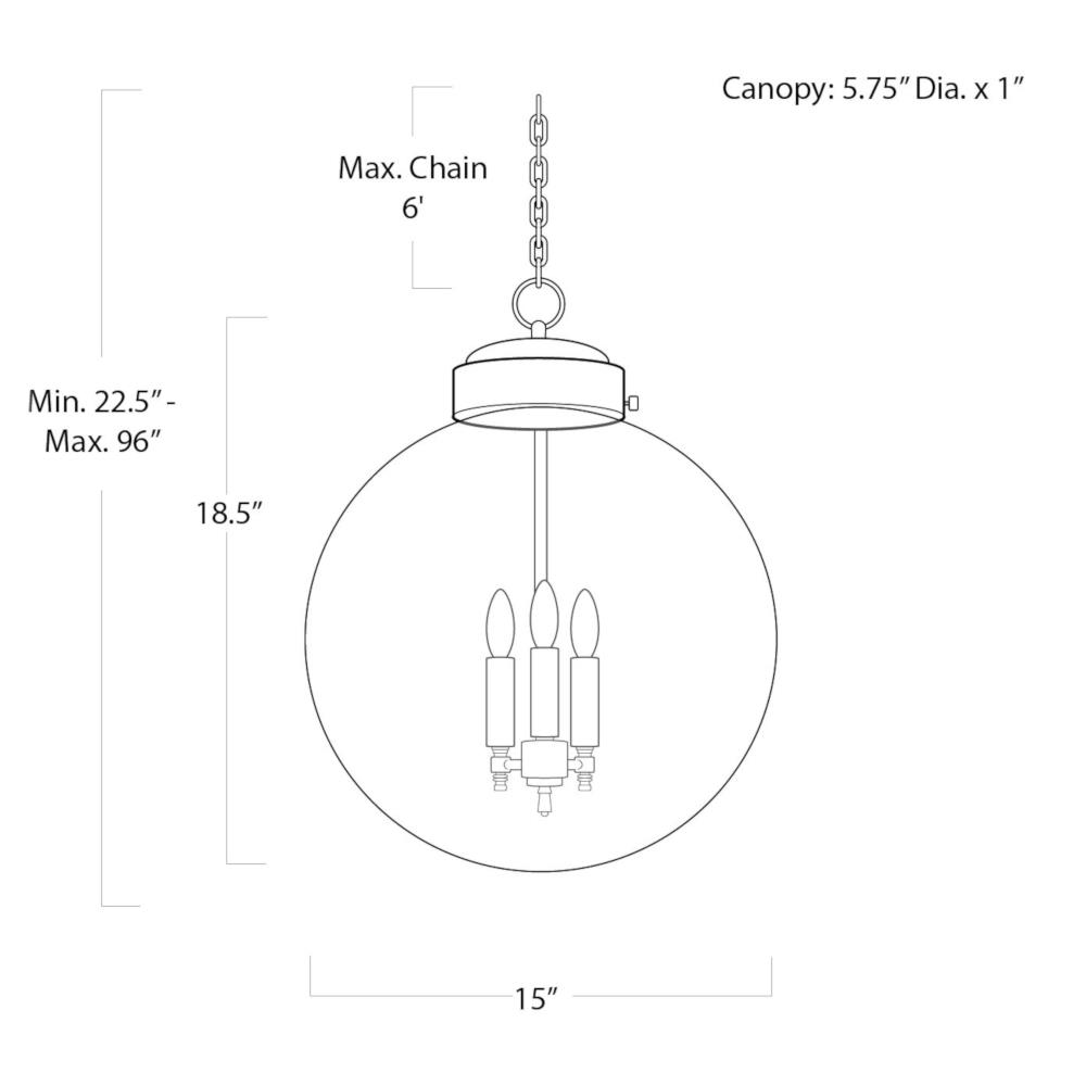 • (3) x 25 watt type B candelabra base (E12) bulbs not included; E12 candelabra socket; Hardwire; Cord: 10 feet; Chain: 6 feet