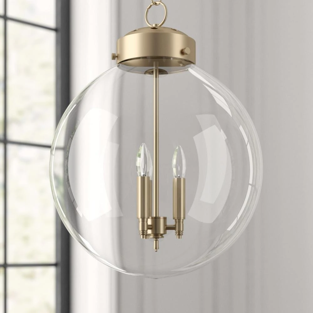 • Maiden Updated Traditional Glass Shade Bronze Pendant|Kathy Kuo Home