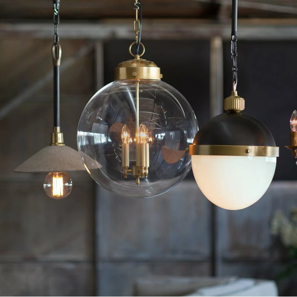 • Pierced Global Bazaar Natural Brass Sphere Pendant|Kathy Kuo Home