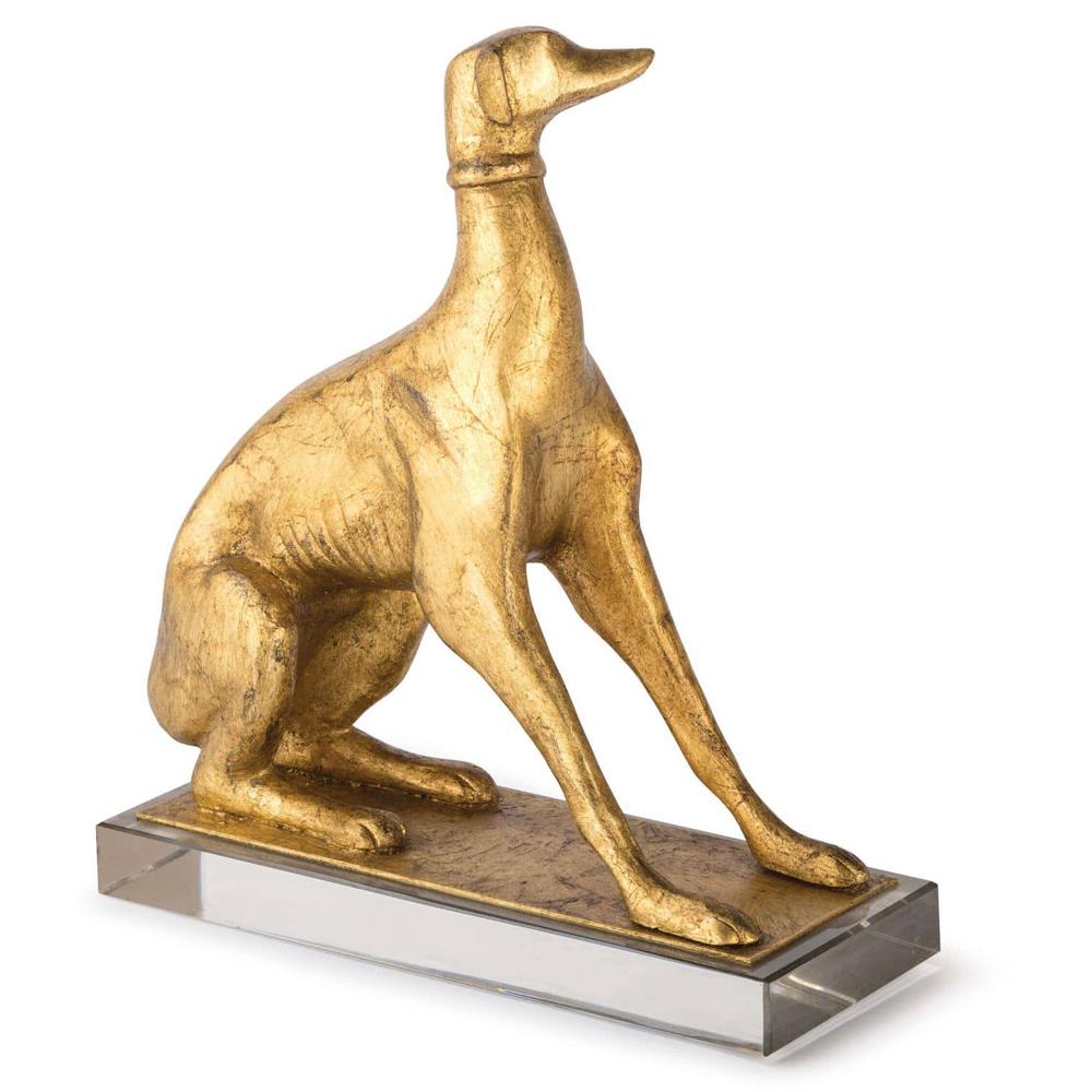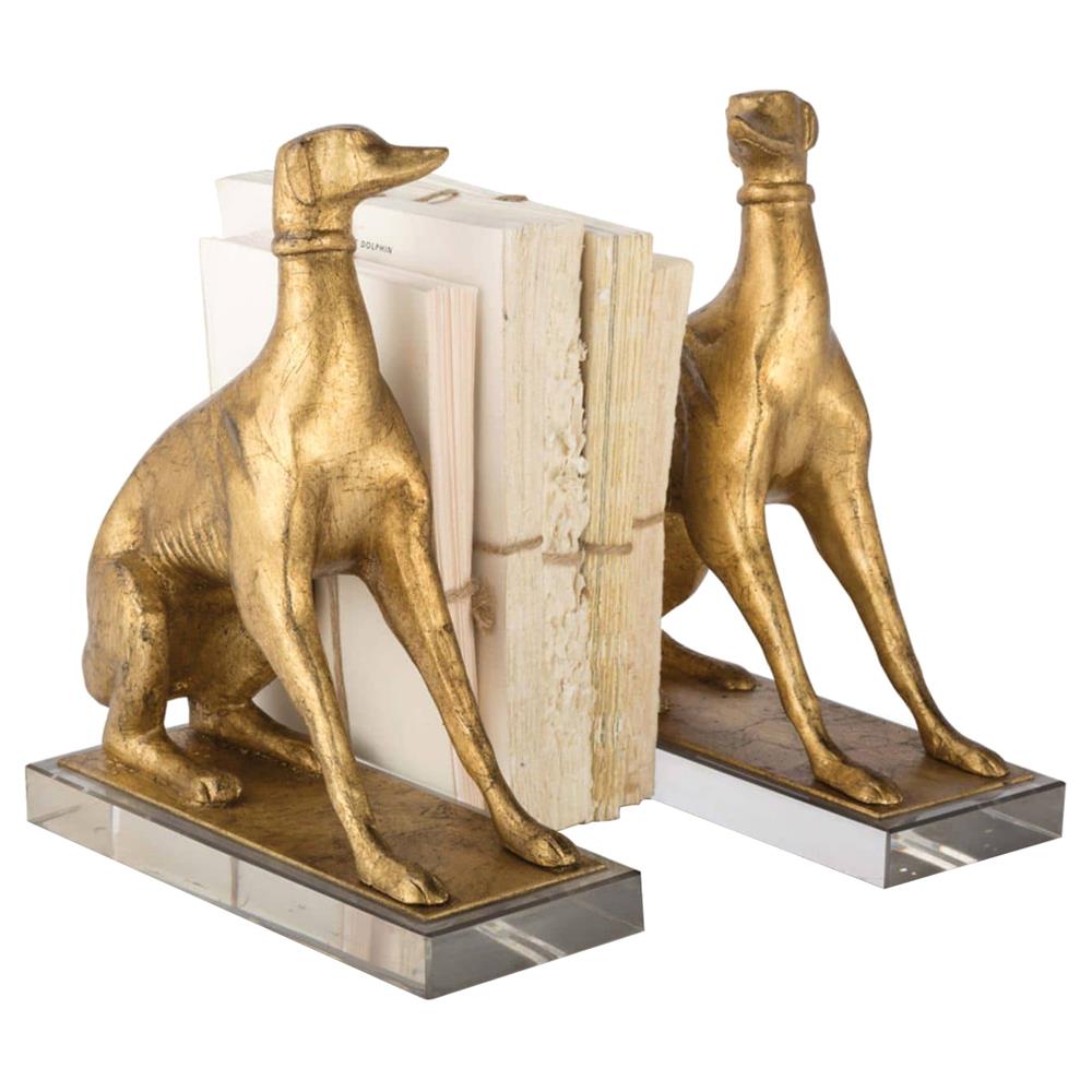 Norman Regency Antique Gold Leaf Resin Crystal Base Dog Bookends