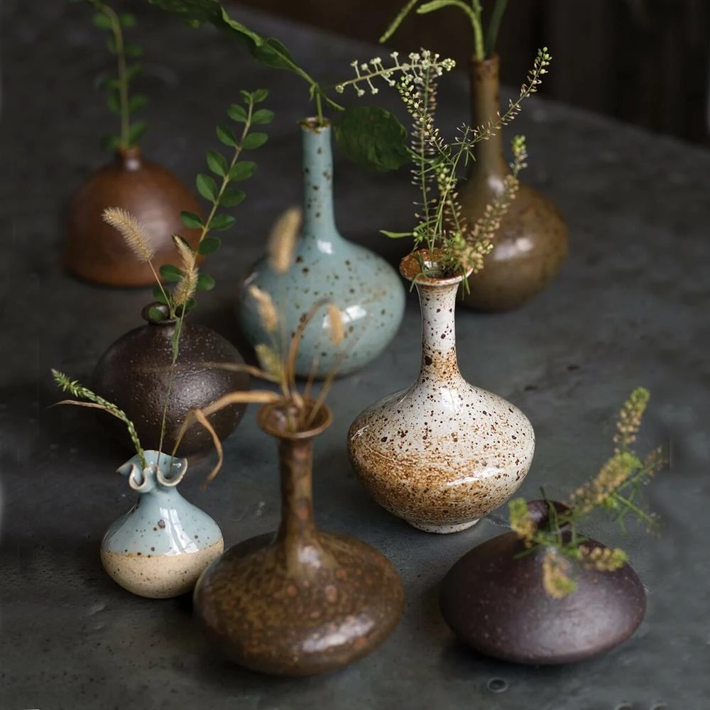 Porcelain Natural Brown Ceramic Bud Vase -Set of 8