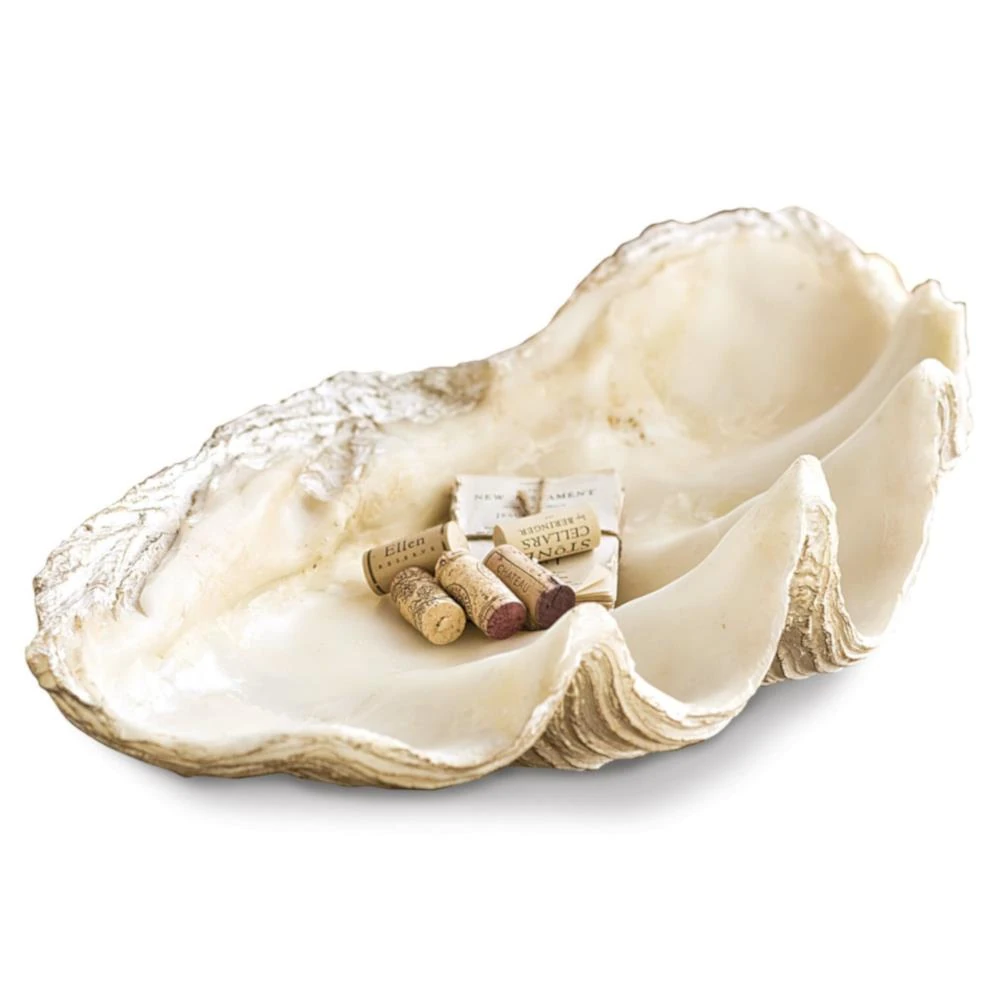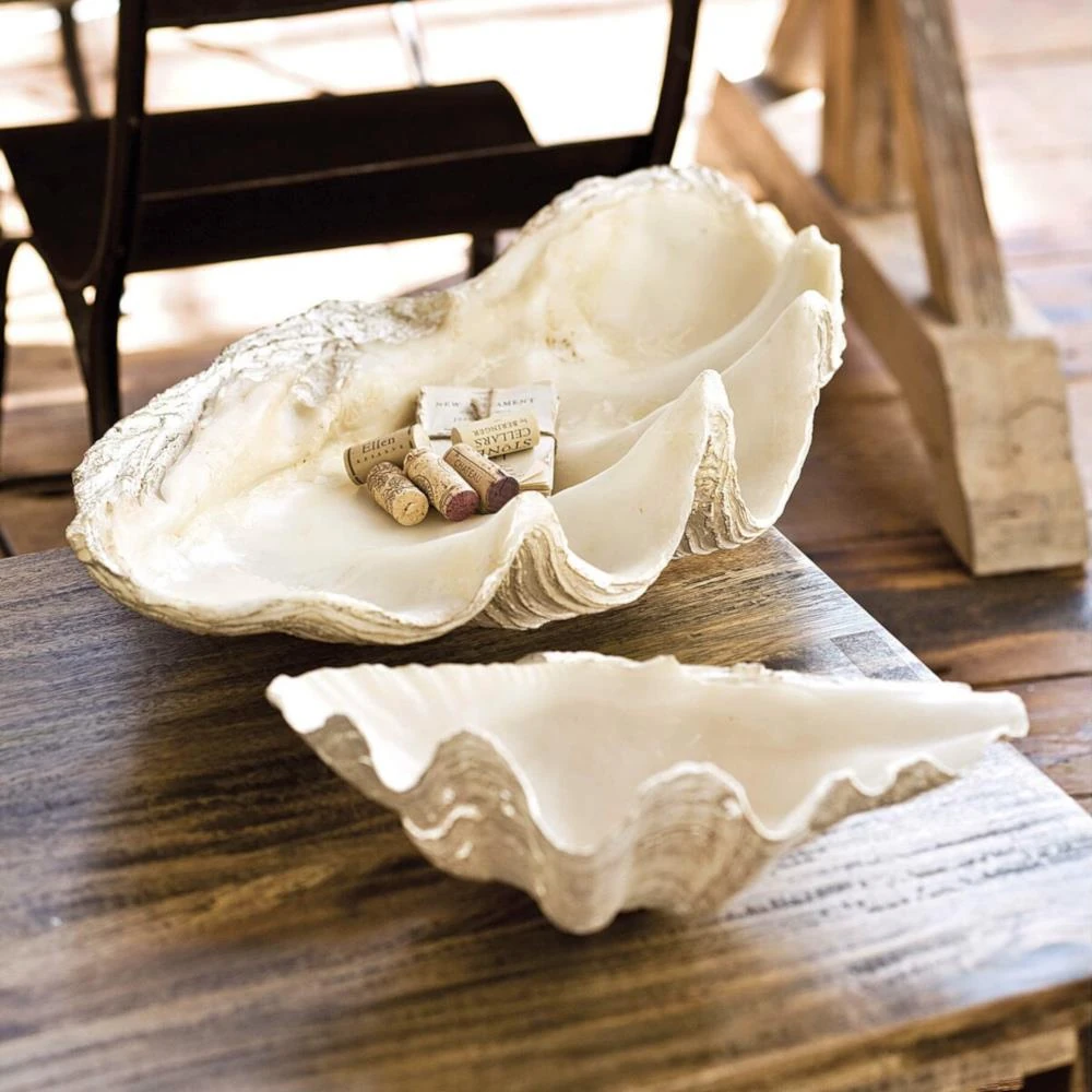 • Large Decorative 21 Inch Coastal Beach White Clam Shell Bowl|Kathy Kuo Home