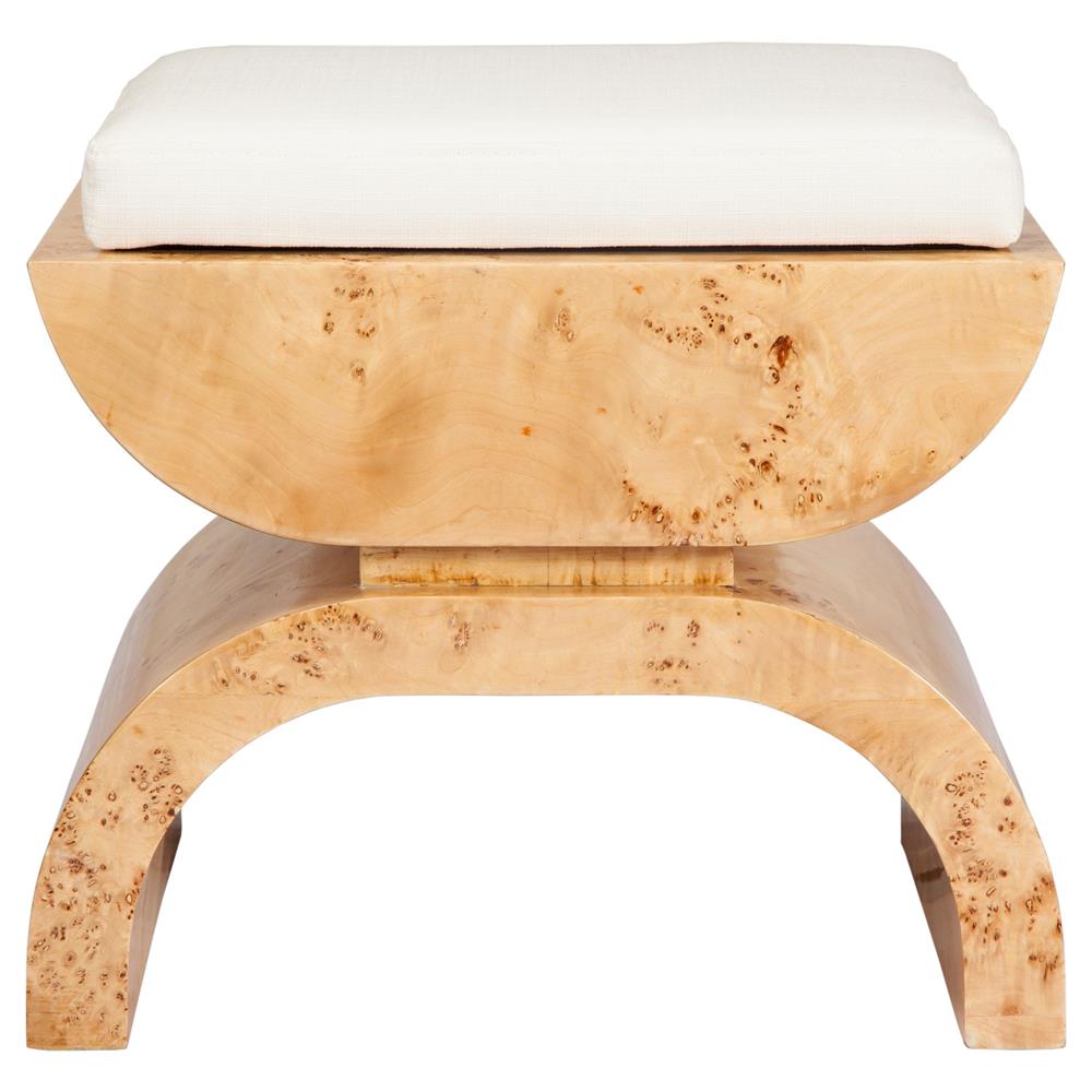 Worlds Away Biggs Modern White Upholstered Cushion Glossy Brown Burl Wood Stool