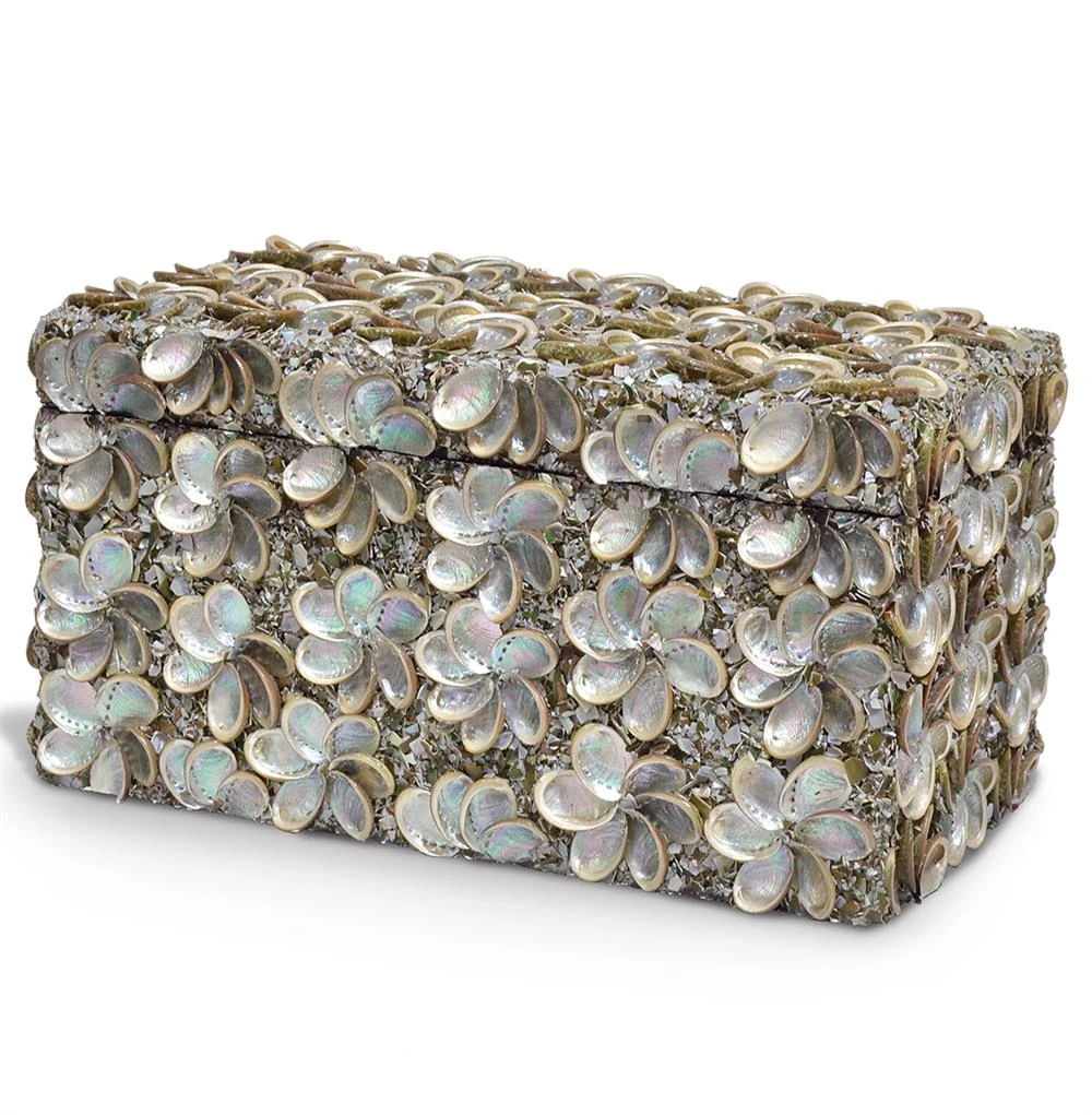 Store your treasures from land and sea in this delicate, hand-crafted box. Tropical abalone shells, arranged in a floral design, shimme ... more