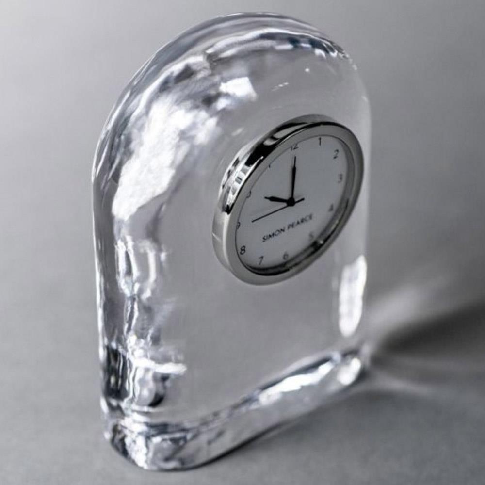 Simon Pearce Barre Glass Modern Clear Glass Round Table Clock