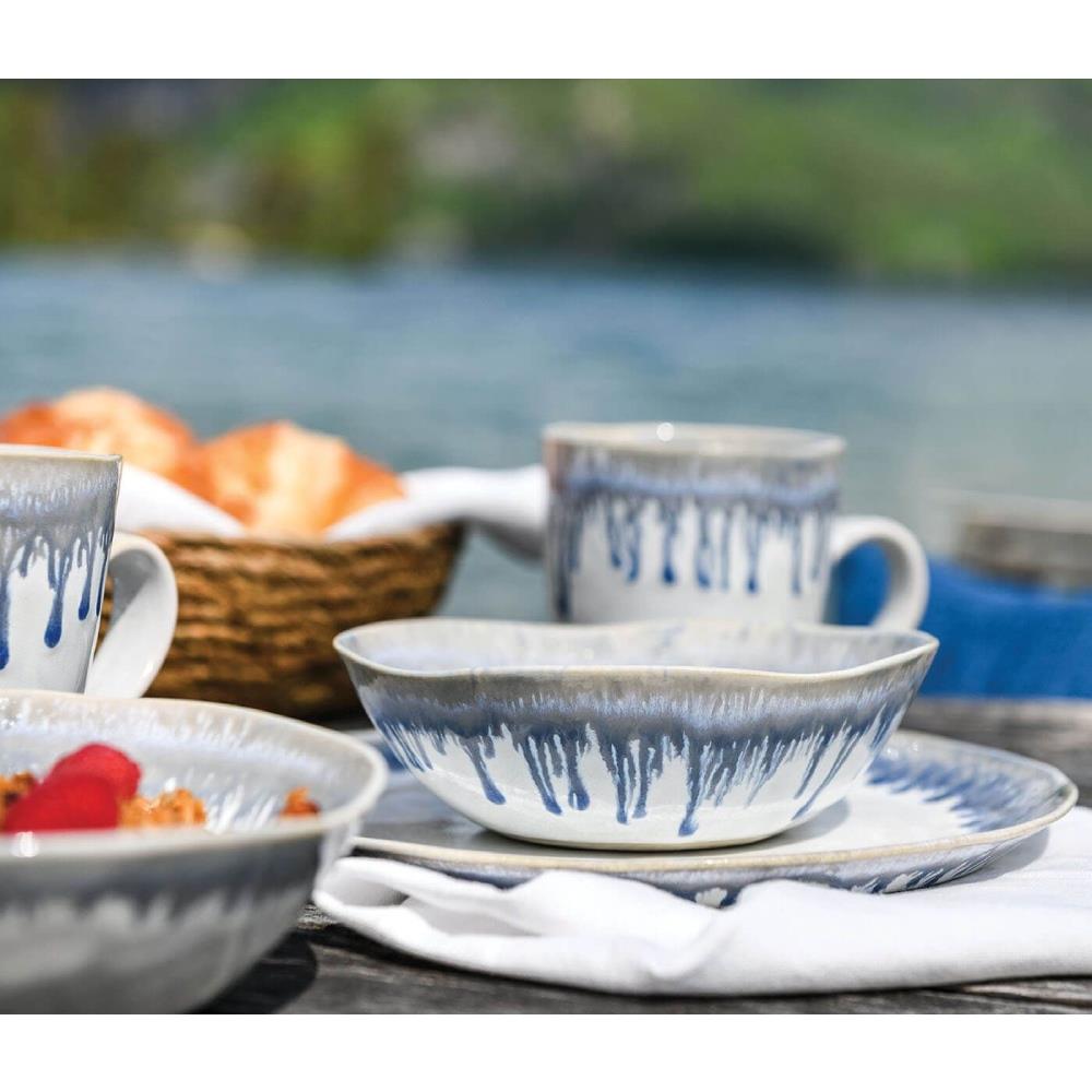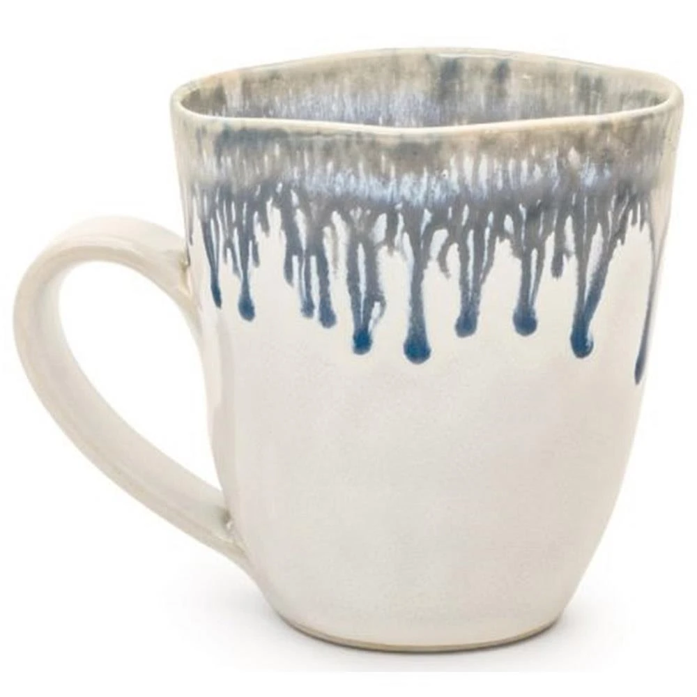 Simon Pearce Burlington Modern Blue Drip Edges White Stoneware Coffee Mug