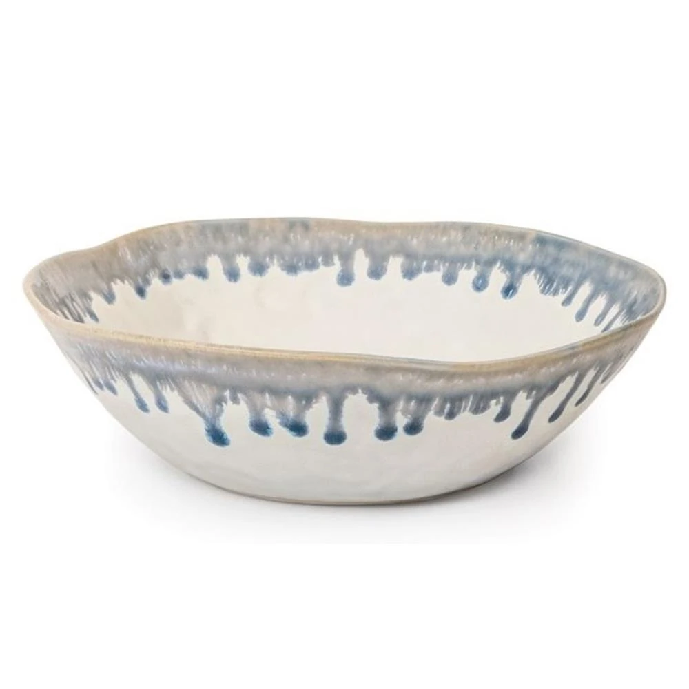 Simon Pearce Burlington Modern Blue Drip Edges White Stoneware Pasta Bowl
