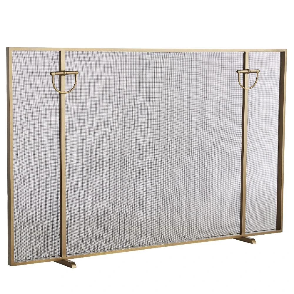 • Gita Classic Simple Iron Fireplace Screen - Gold|Kathy Kuo Home