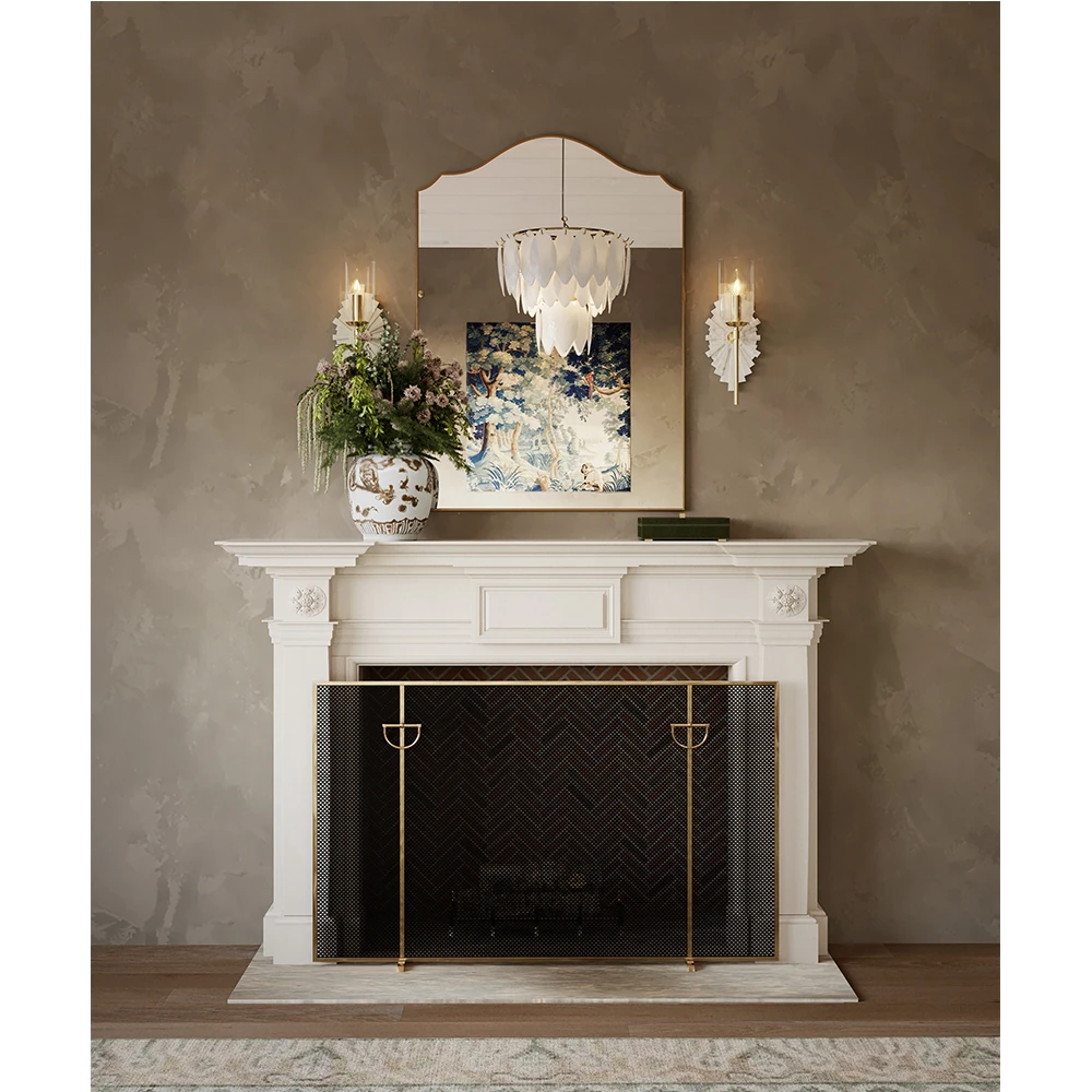 Gita Classic Simple Iron Fireplace Screen - Gold