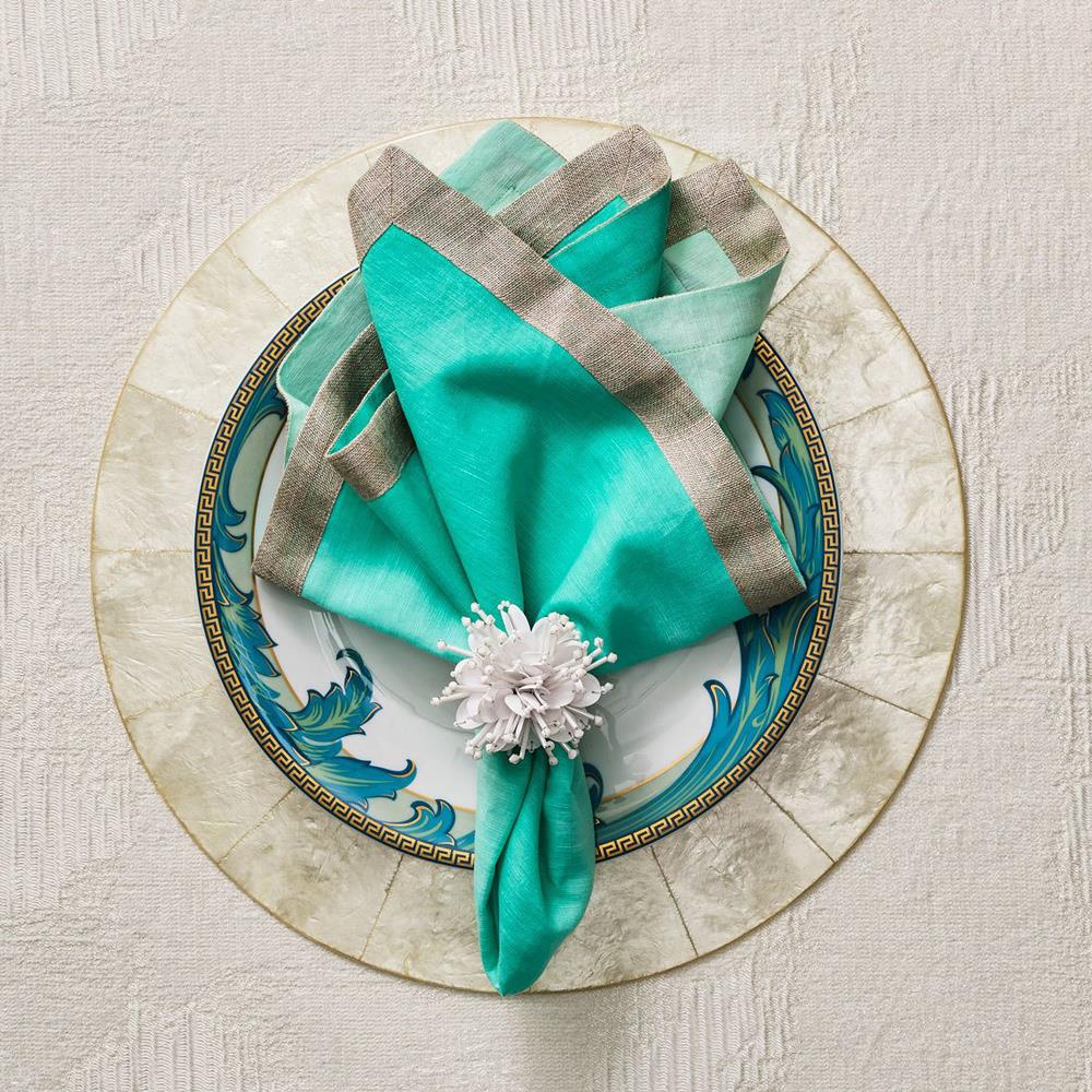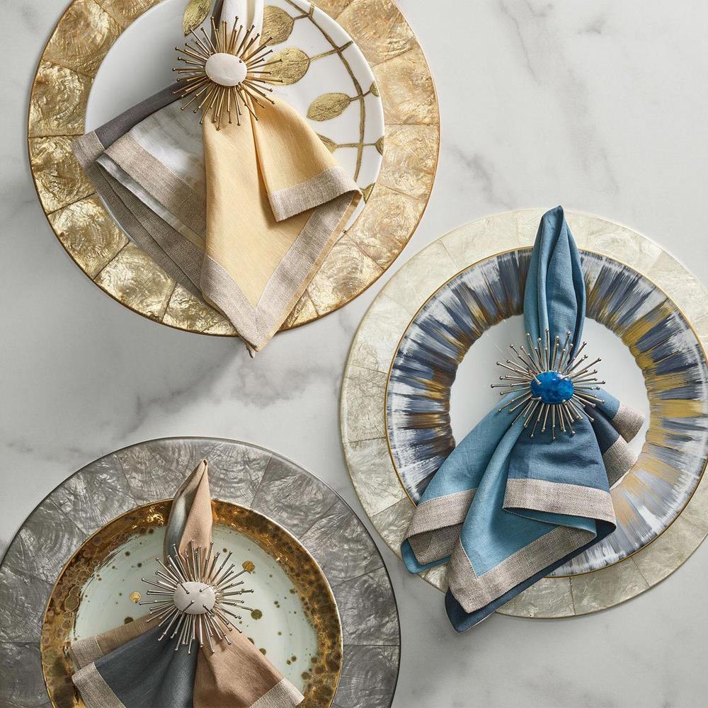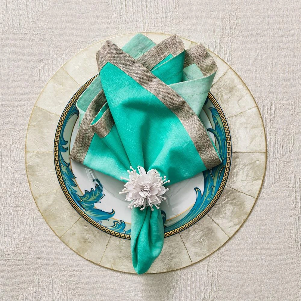 • Divot Modern Silver Edge White Linen Napkin - Set of 4|Kathy Kuo Home
