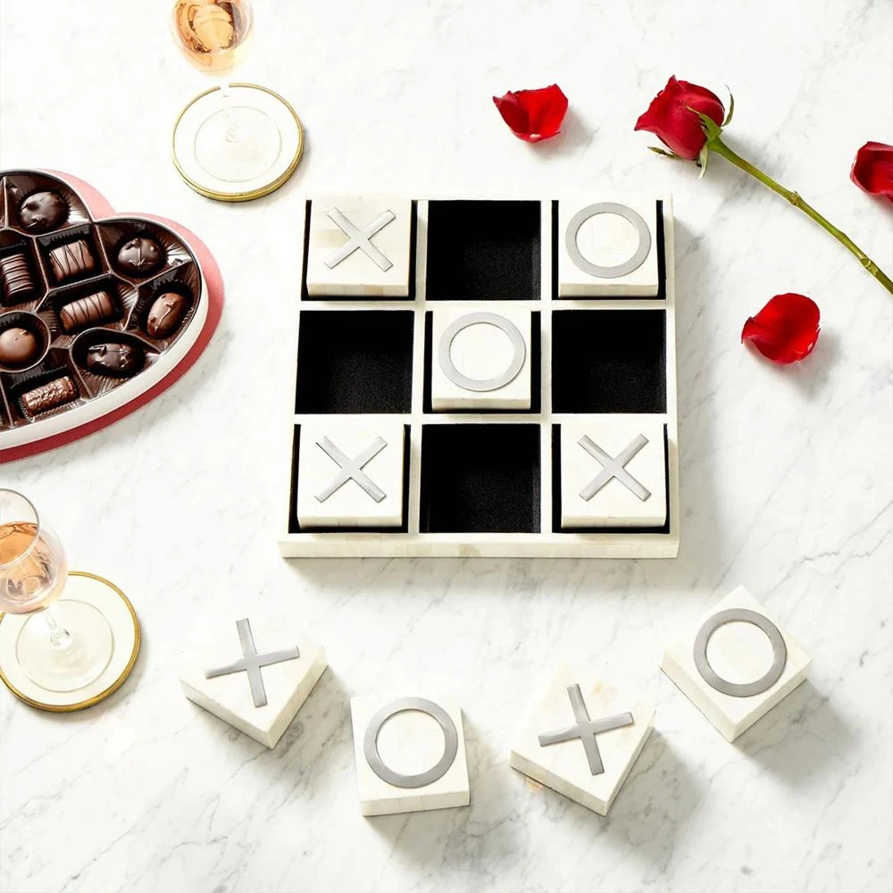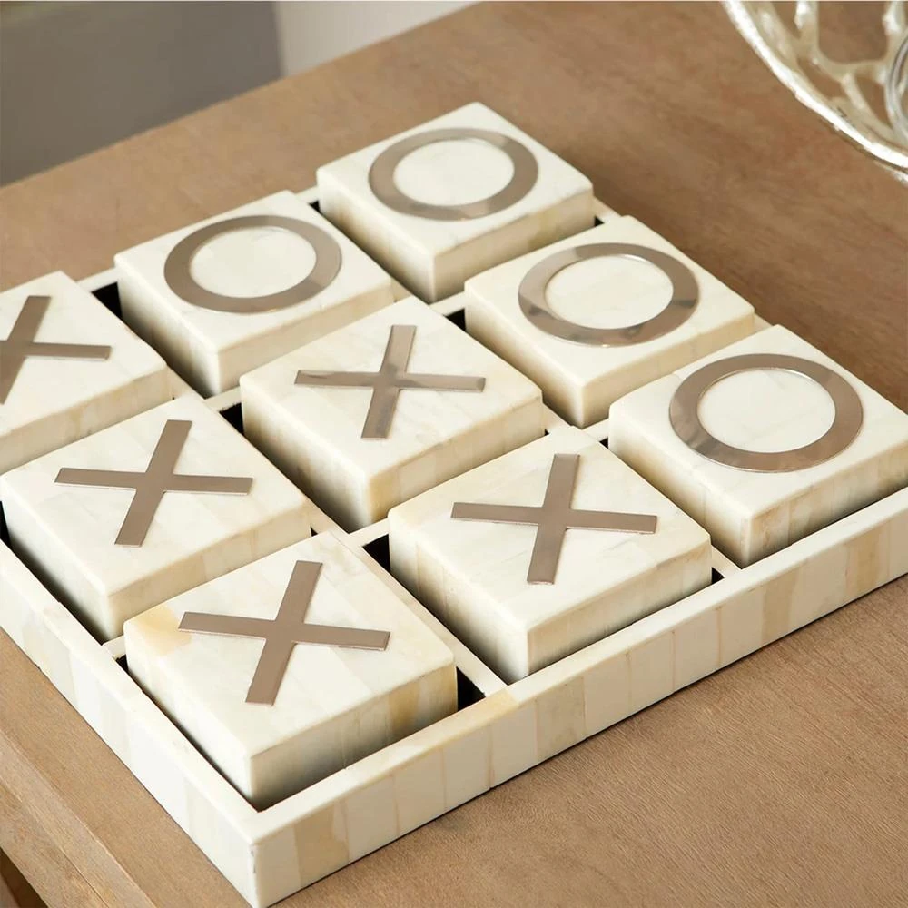Tic Tac Toe Modern Classic Natural White Bone Block Game Set