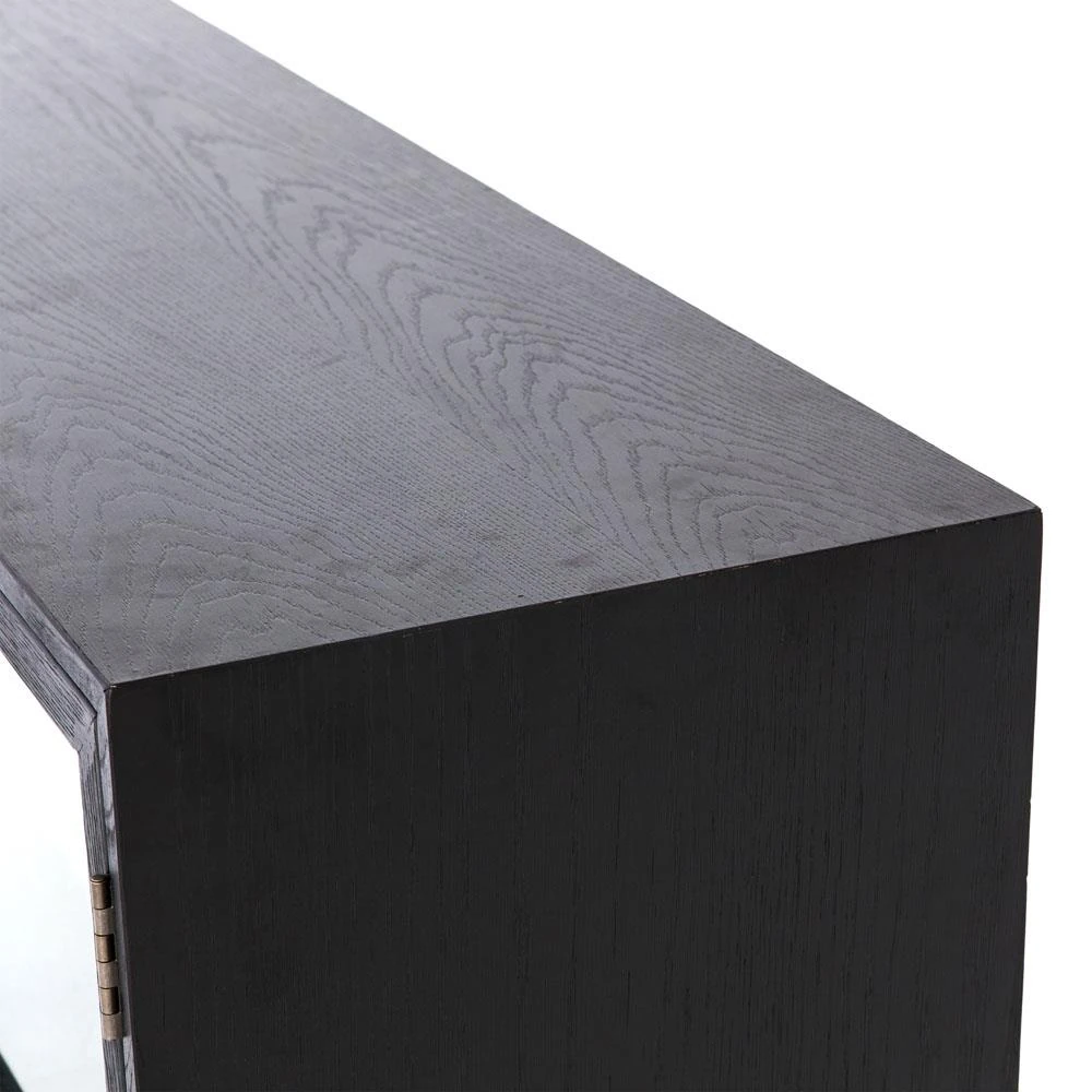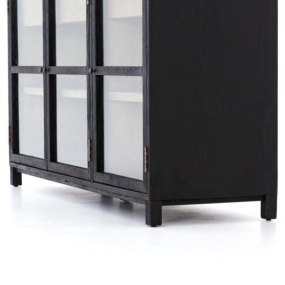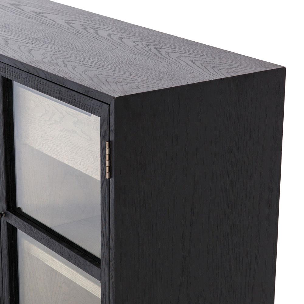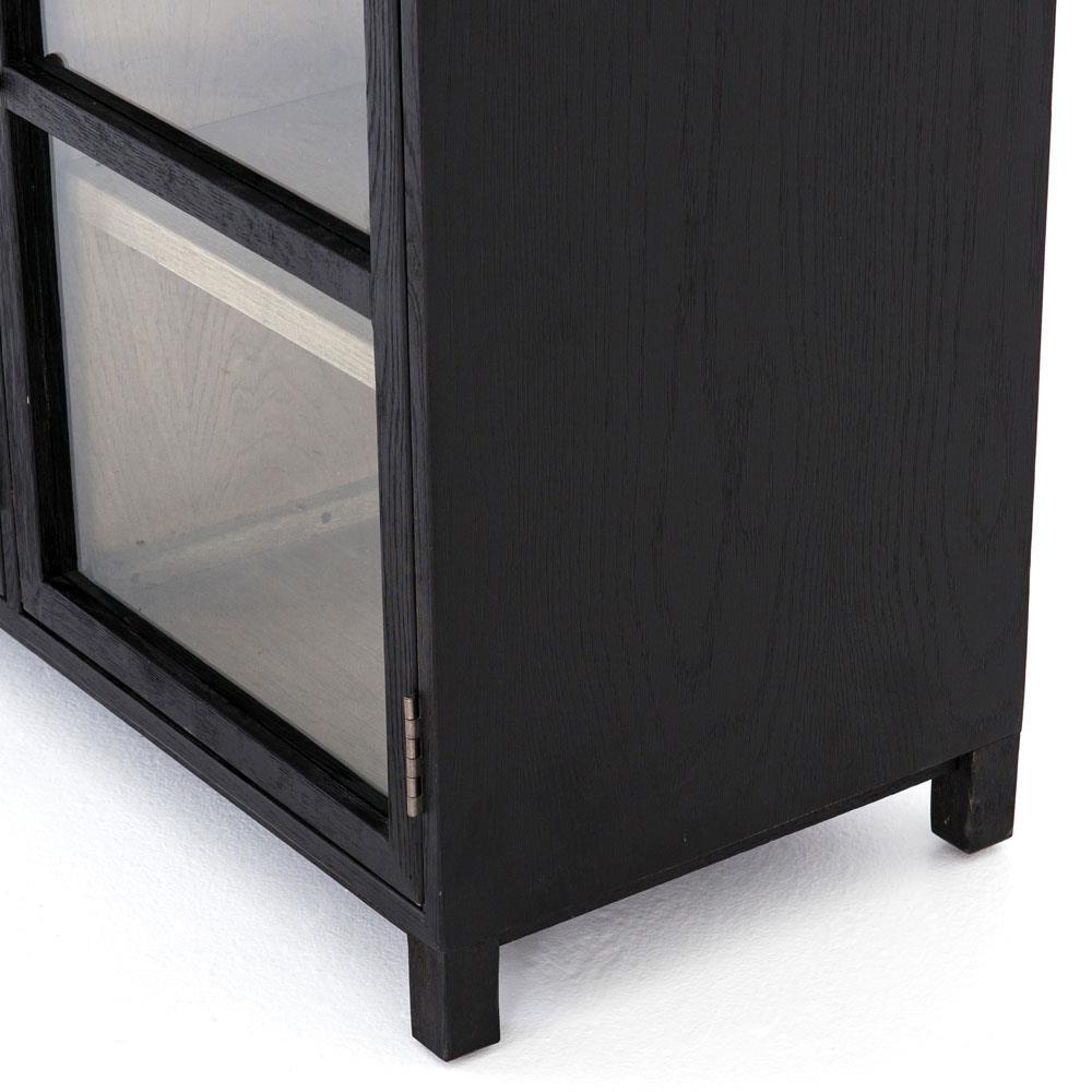 • Features a black drifted oak frames lighter interior shelving for subtle but striking contrast