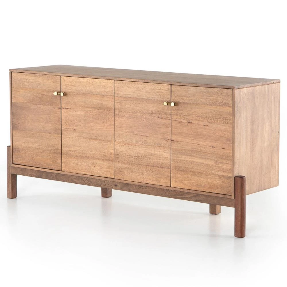 Valdo French Country Beige Hardwood Gold Stainless Steel Base 4 Door Sideboard