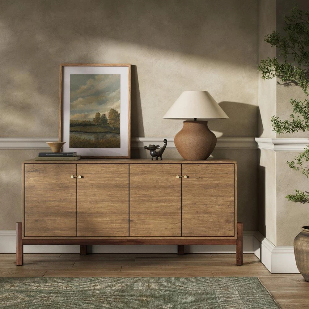 Rissa Mid Century Modern Brown Acacia Wood Sideboard