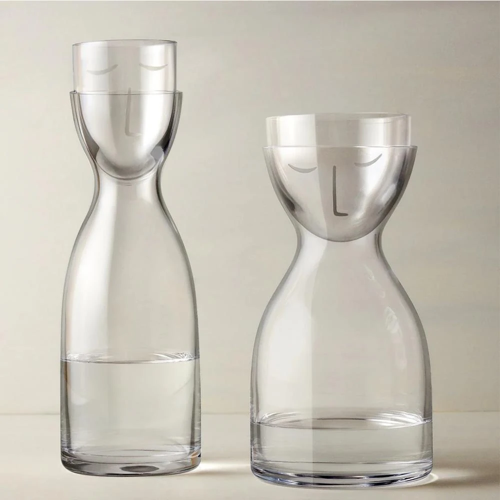 Mr. & Mrs. Modern Classic Clear Crystal Night Water Carafe Set - Small
