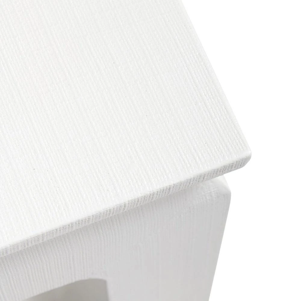 Maya Mid Century White Painted Linen Wood Frame 4 Door Media Cabinet - 72"W