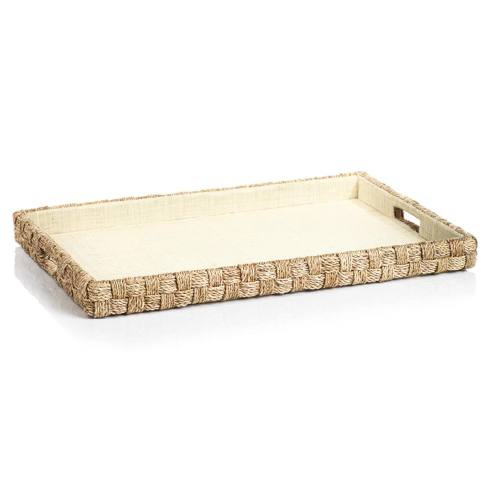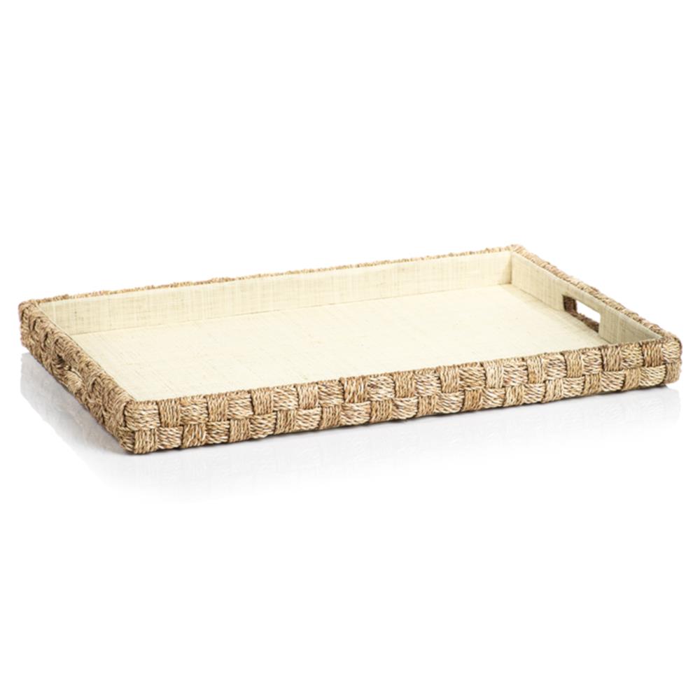 • Bridgette Coastal Natural Woven Seagrass Oval Decorative Tray|Kathy Kuo Home