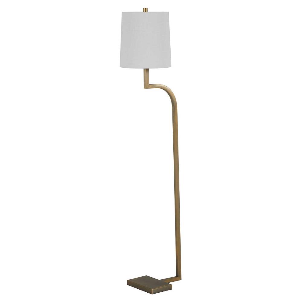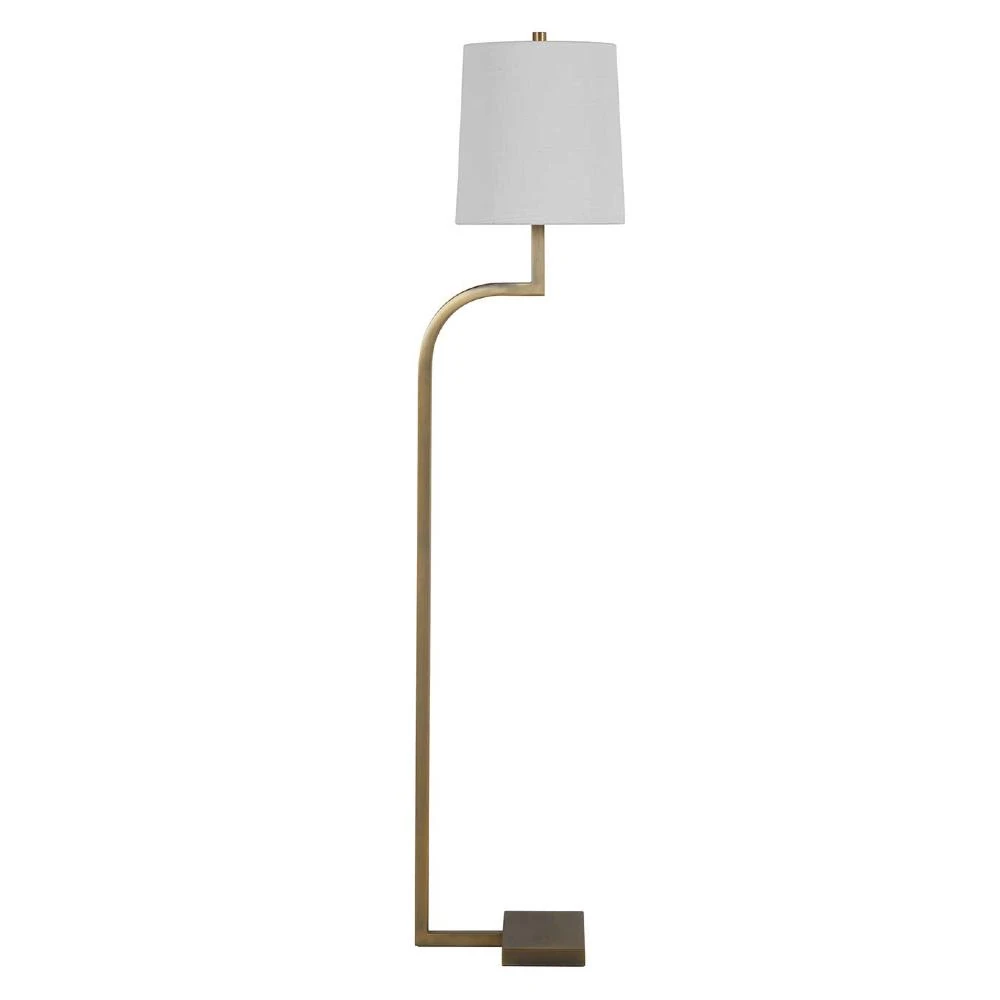 Hawthorne Modern Classic White Linen Antique Brass Iron Floor Lamp