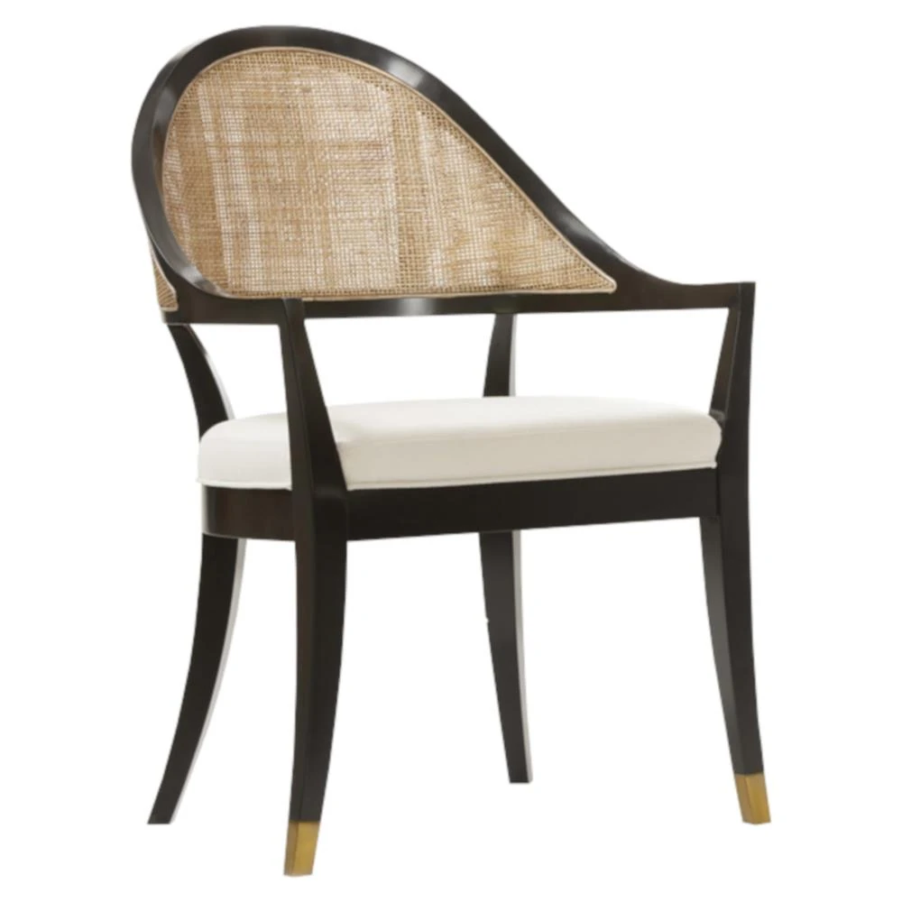 Leona Mid Century Modern Ebony Black Walnut Cane Backing Brass Trim Arm Chair