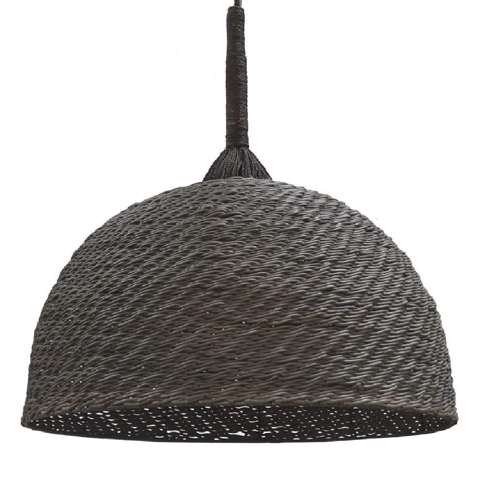 Palecek Wisteria Coastal Beach Dark Grey Woven Wicker Statement Pendant