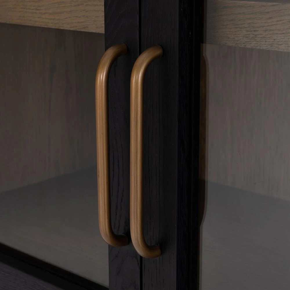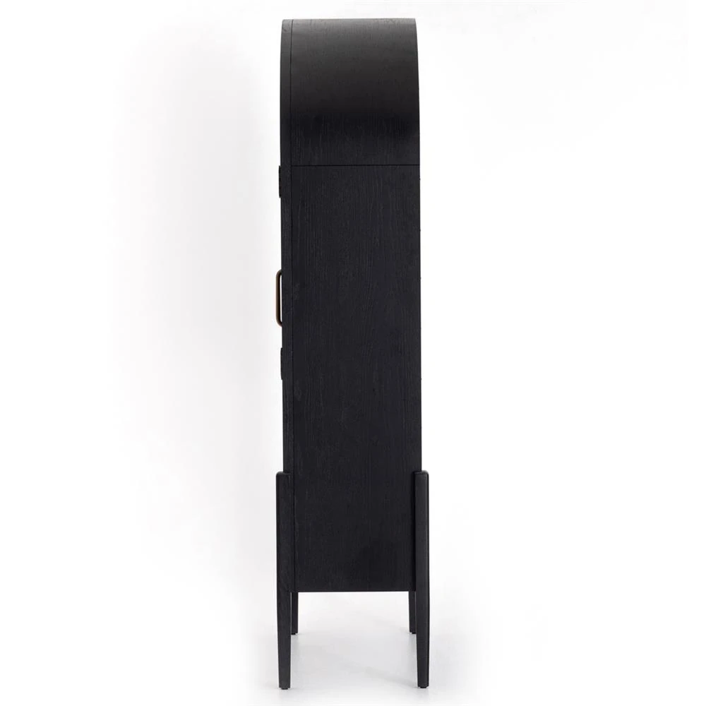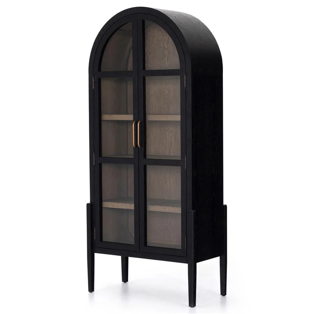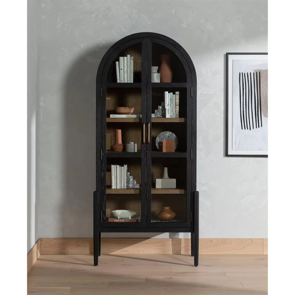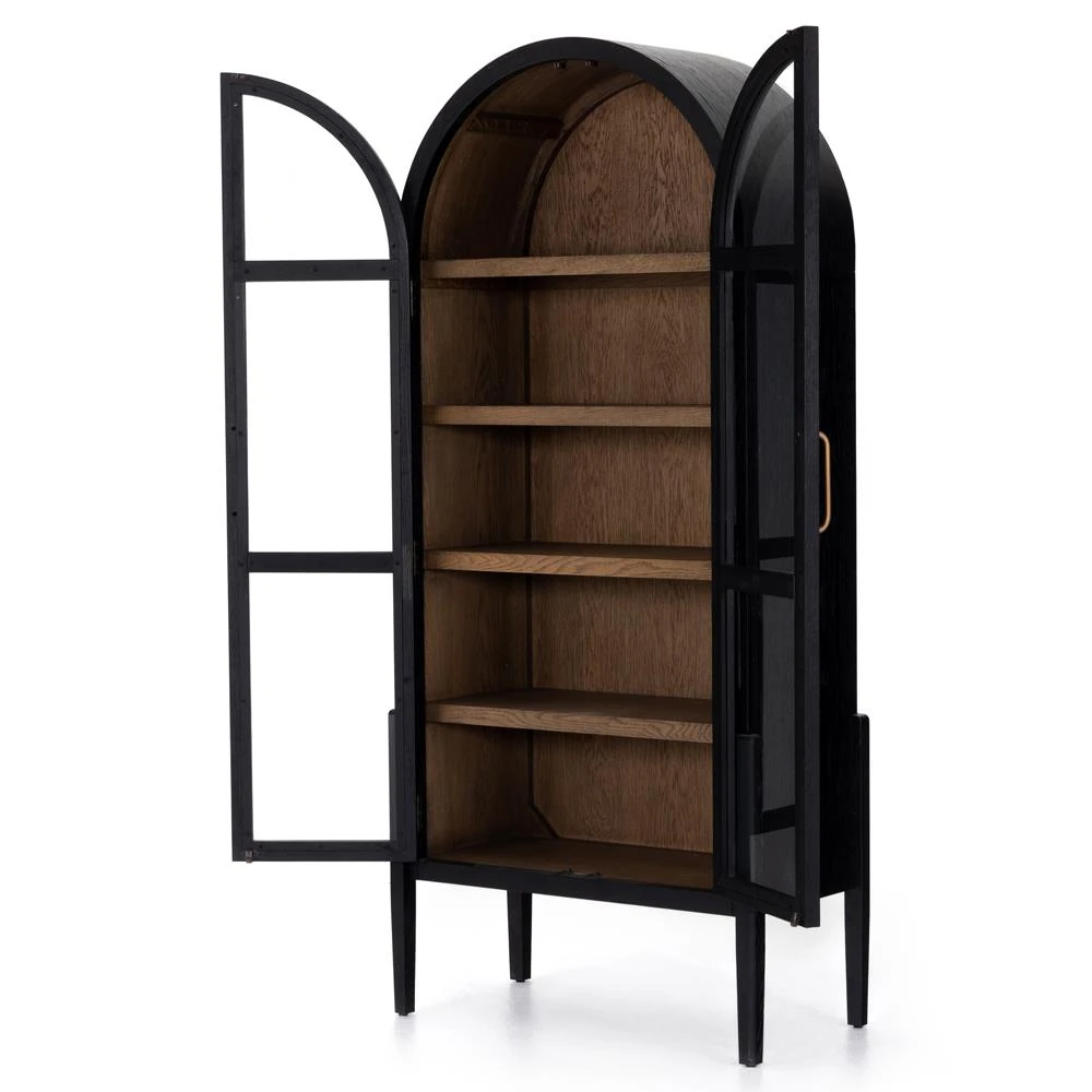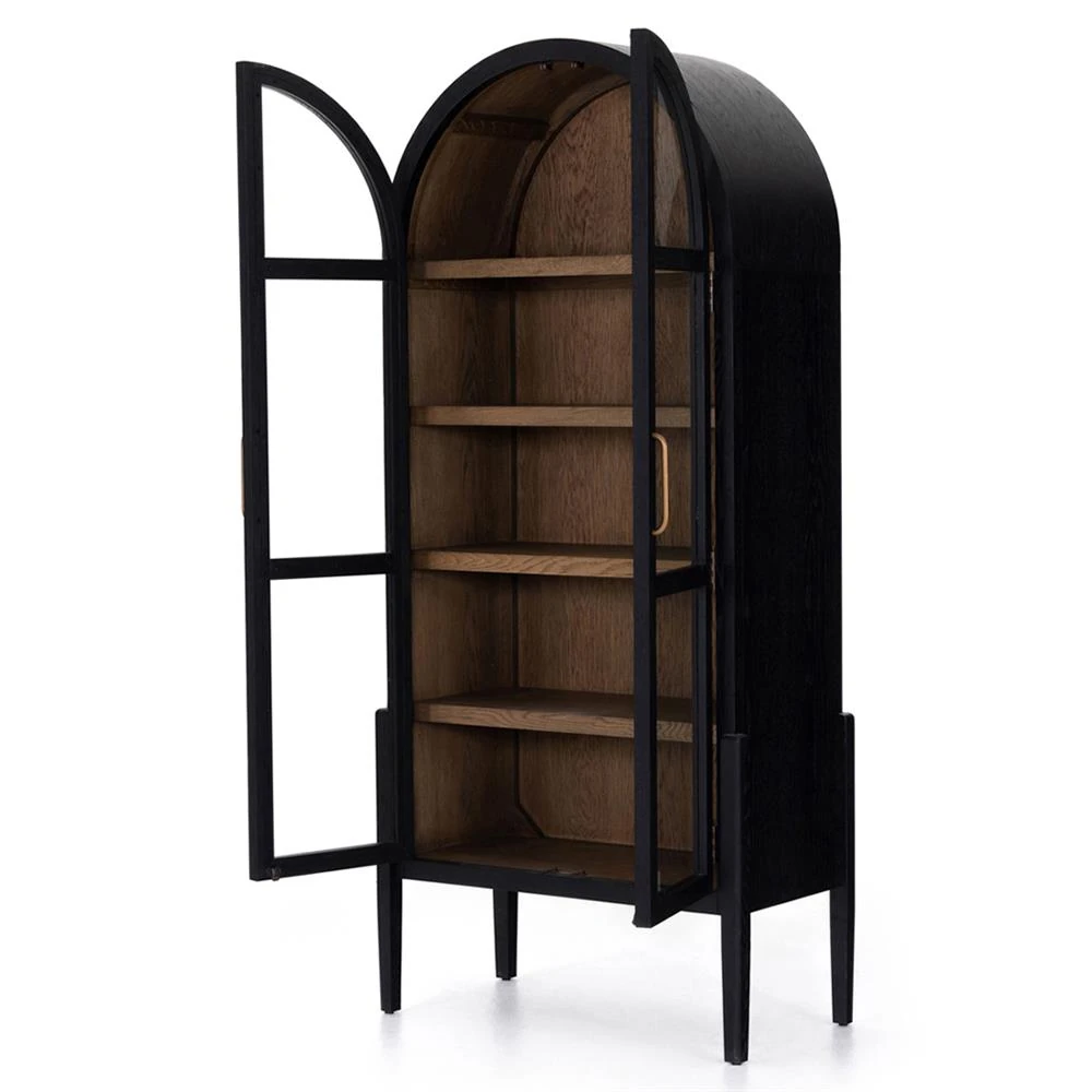 Ivan Mid Century Clear Glass Black Solid Oak Wood 2 Door Arched Display Case