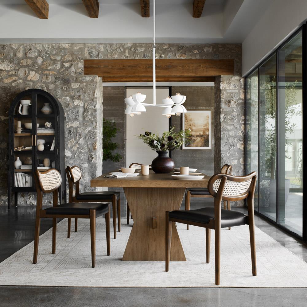 • Beccy Rustic Brown Solid Wood Marble Accent Cream Performance Dining Collection|Kathy Kuo Home