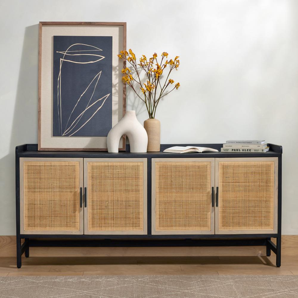 Corazon Global Bazaar Woven Natural Cane Black Wash Mango Wood Sideboard