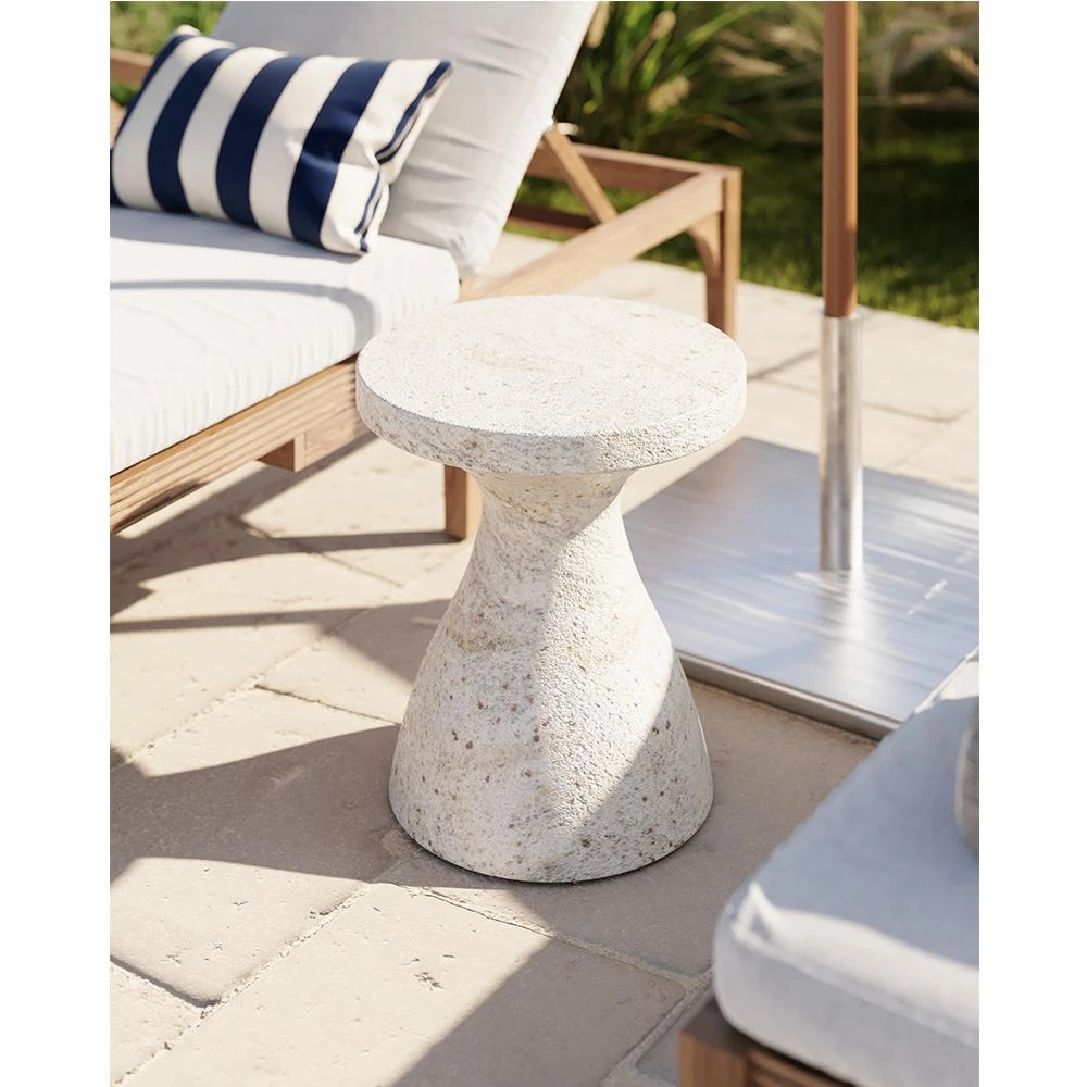 • Brandon Coastal Beach Ivory Textured Stonecast Outdoor Side End Table|Kathy Kuo Home