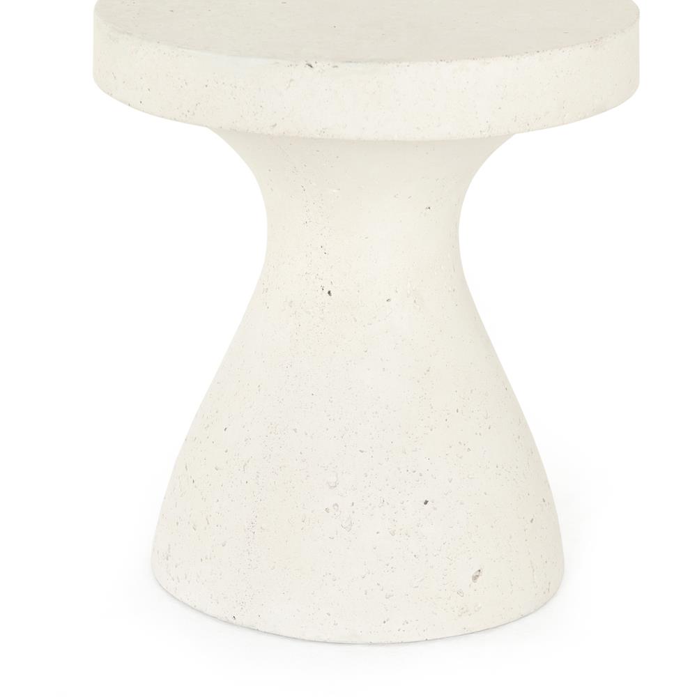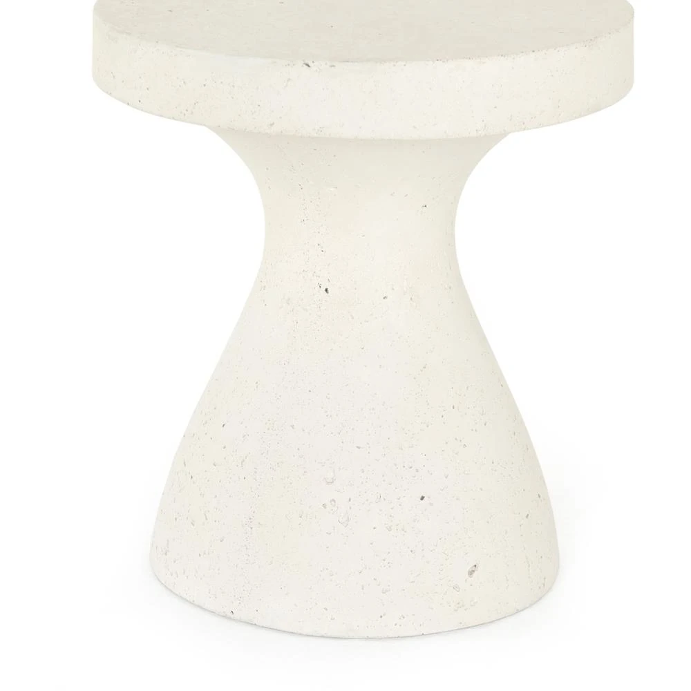 Aurore Modern Classic Aged White Concrete Round Pedestal Outdoor End Table