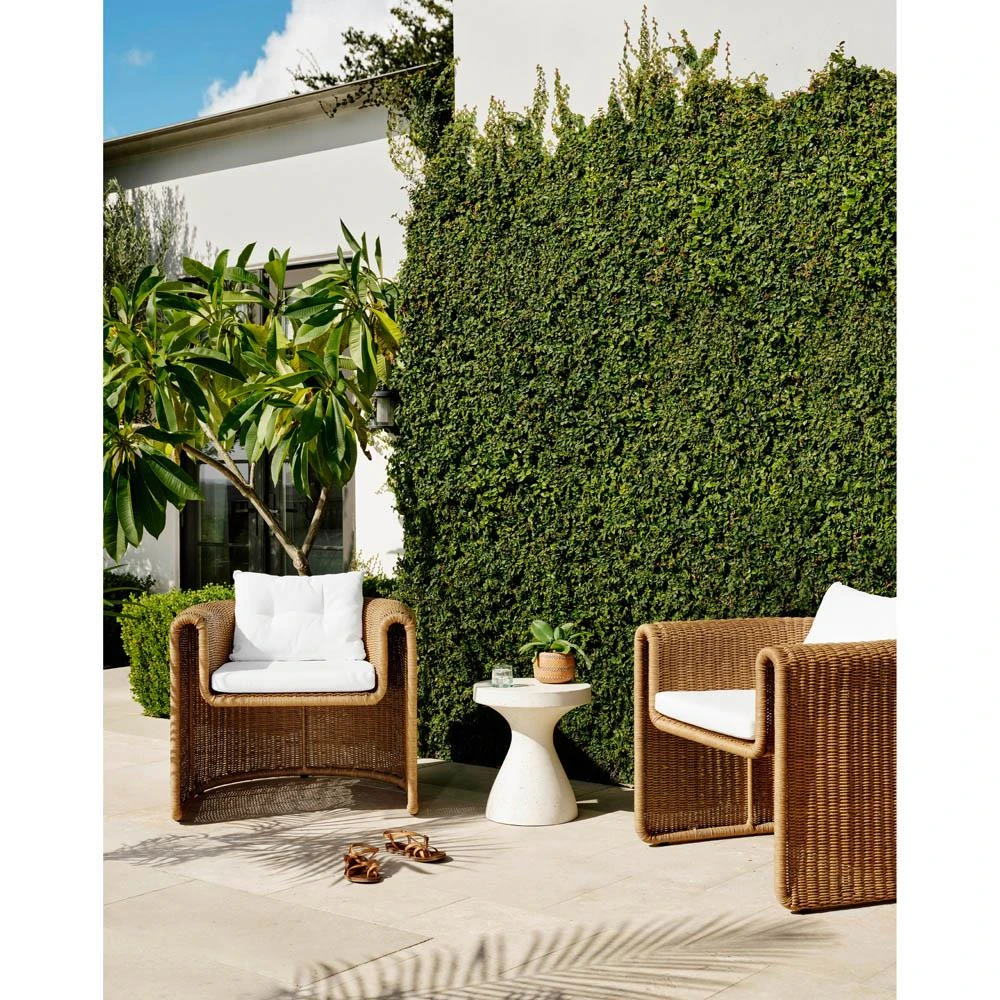 • Halo Modern Coastal Oyster Wicker Outdoor Lounge Chair|Kathy Kuo Home