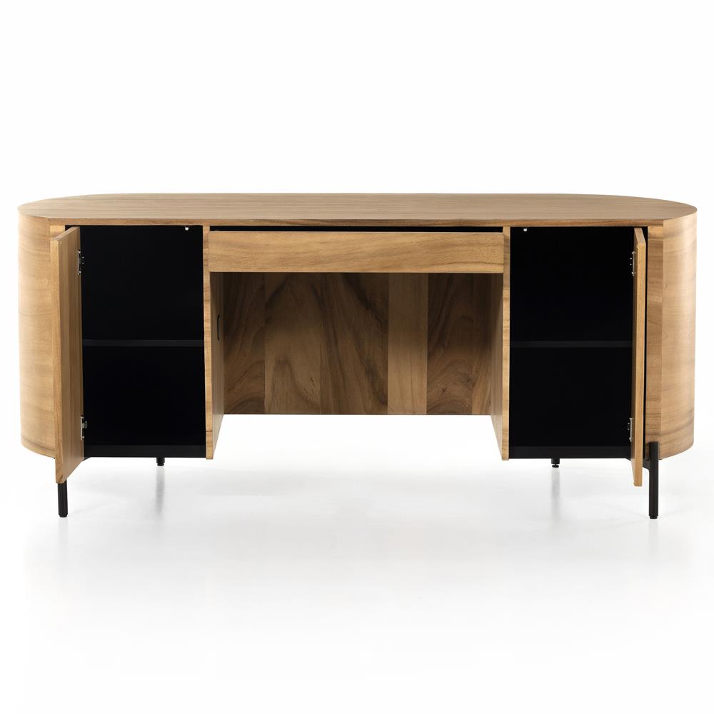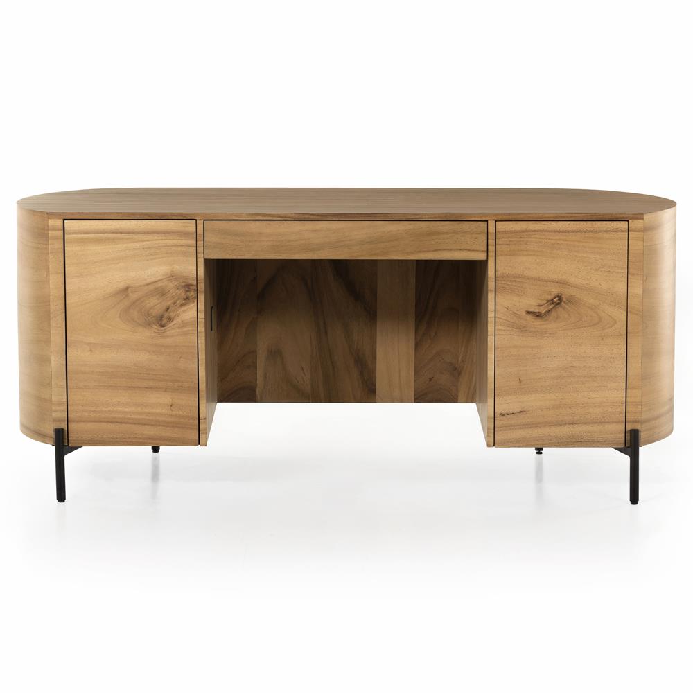 With rounded edges and dramatic wood graining, the Khalil Modern Classic Brown Guanacaste Wood Executive Desk makes a statement in any ... more